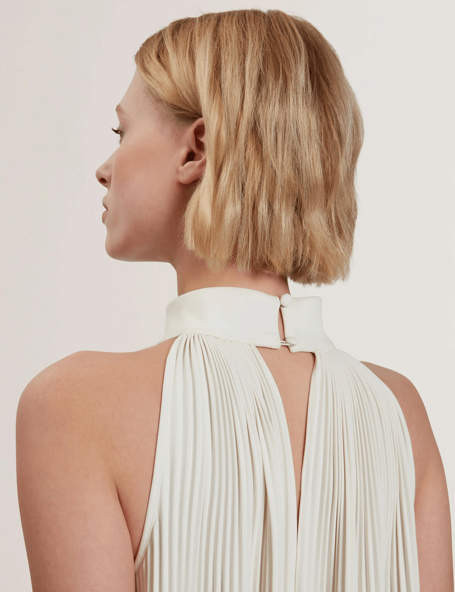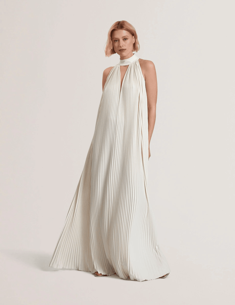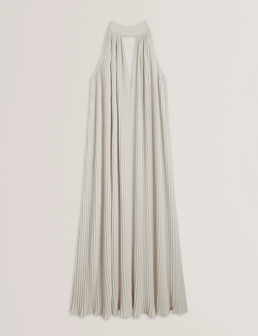 Elevate your wardrobe with the stunning Ted Baker AKALA | IVORY sleeveless maxi dress. Designed for elegance and comfort, this exquisite dress features all-over sunray pleats that create a captivating silhouette. Whether you're attending a garden party or a summer wedding, this dress ensures you stand out effortlessly.