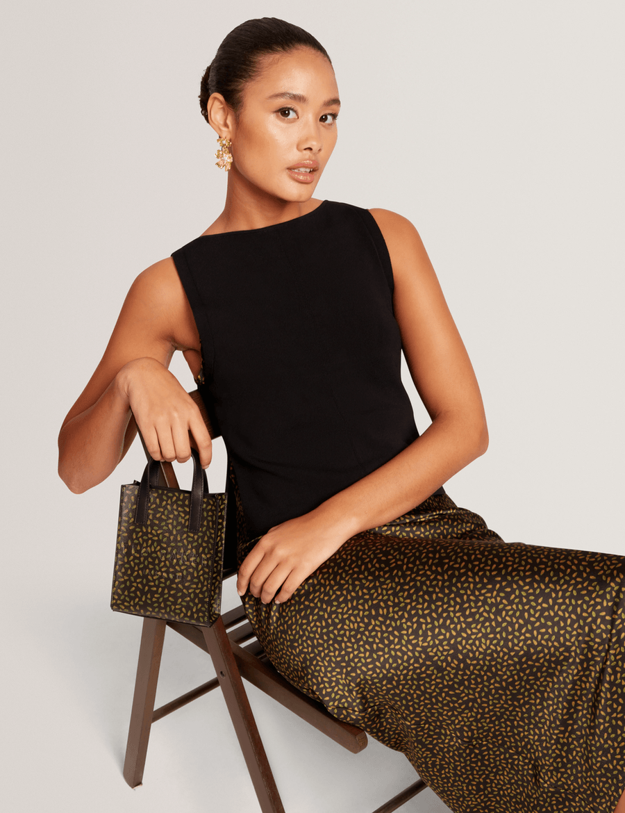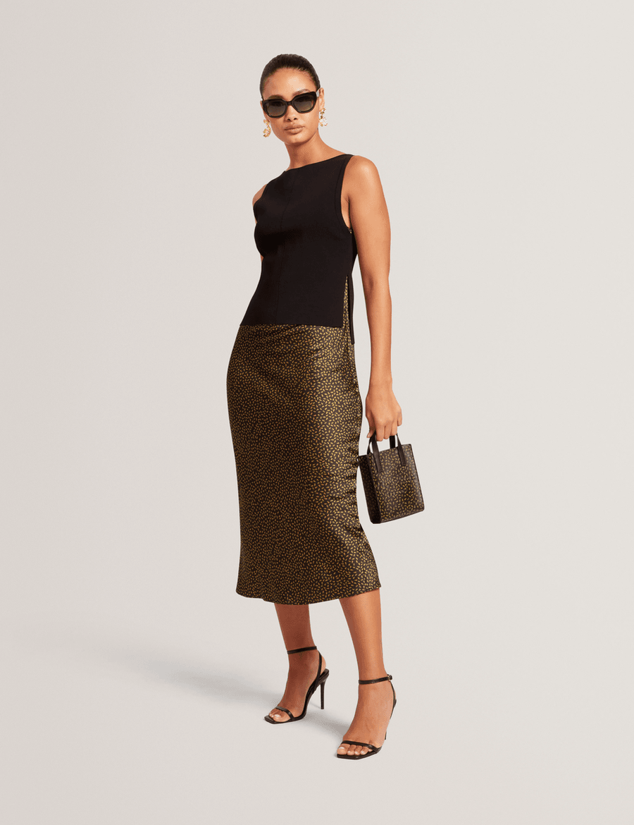 Transform your wardrobe with the stunning Ted Baker ANDERA | BLACK slip dress. This chic midi dress offers two stylish looks in one, making it a must-have for any fashionista. With its elegant satin fabric and unique ditsy leaf print, the ANDERA dress is designed to charm on its own or with a stylish layer.