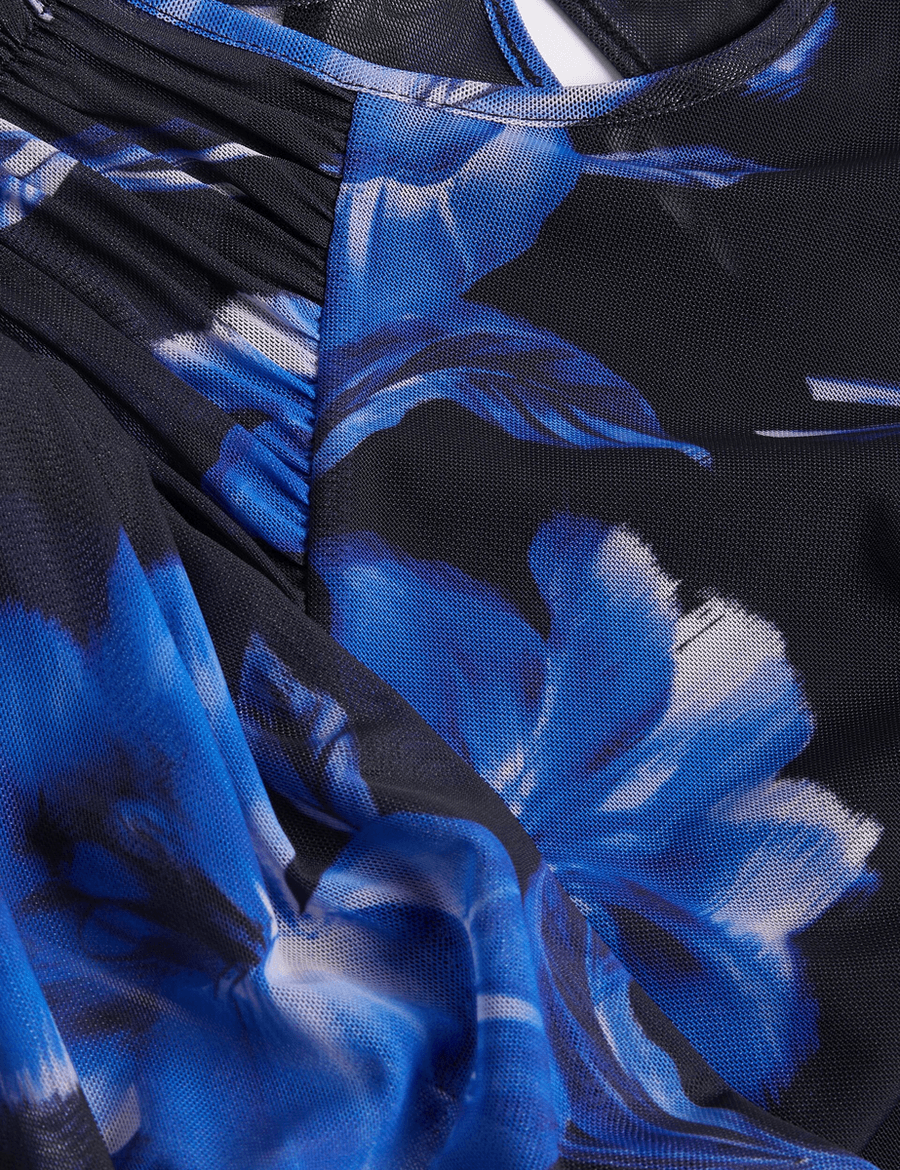 Step into elegance with the Ted Baker CARMALL | BLUE, a mesmerizing mesh mini dress designed to turn heads. Featuring a captivating floral garden print, this dress is perfect for any occasion, from garden parties to evening outings.