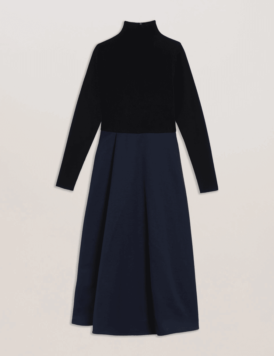 Discover the stunning Ted Baker CHIRA | BLACK, a perfect blend of style and sophistication. This exquisite midi dress features a knitted bodice and a chic funnel neckline, making it an ideal choice for any occasion.