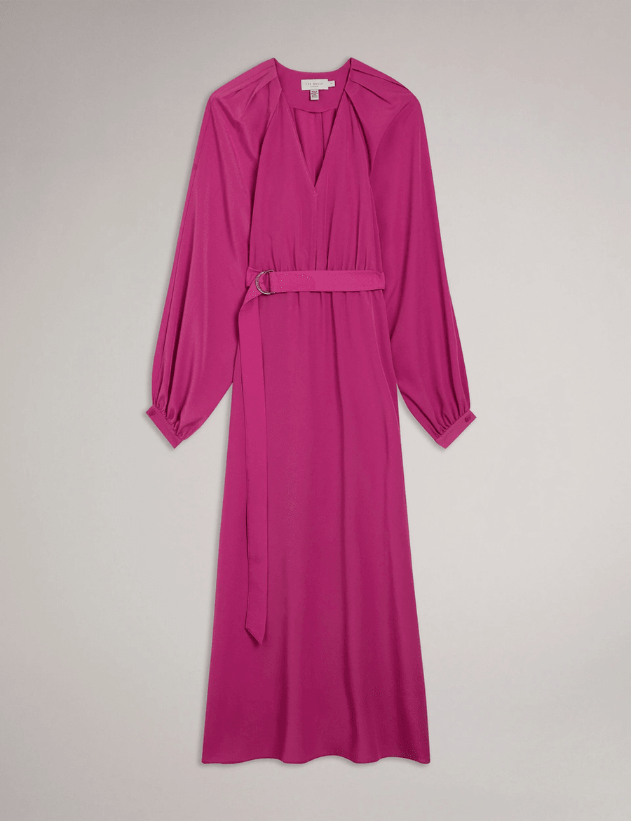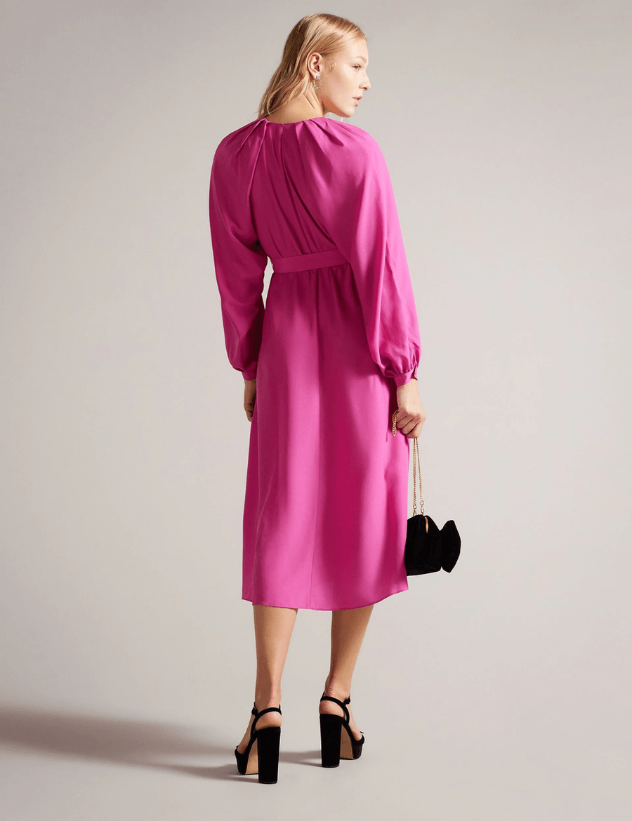 The Ted Baker COMUS | BRT-PINK is not just a dress; it's a statement piece. Crafted with care, this midi dress features long sleeves that provide a stylish yet comfortable fit, making it ideal for any occasion. The v-neckline offers a flattering look while the gathered shoulders create an elegant touch, ensuring you stand out wherever you go.