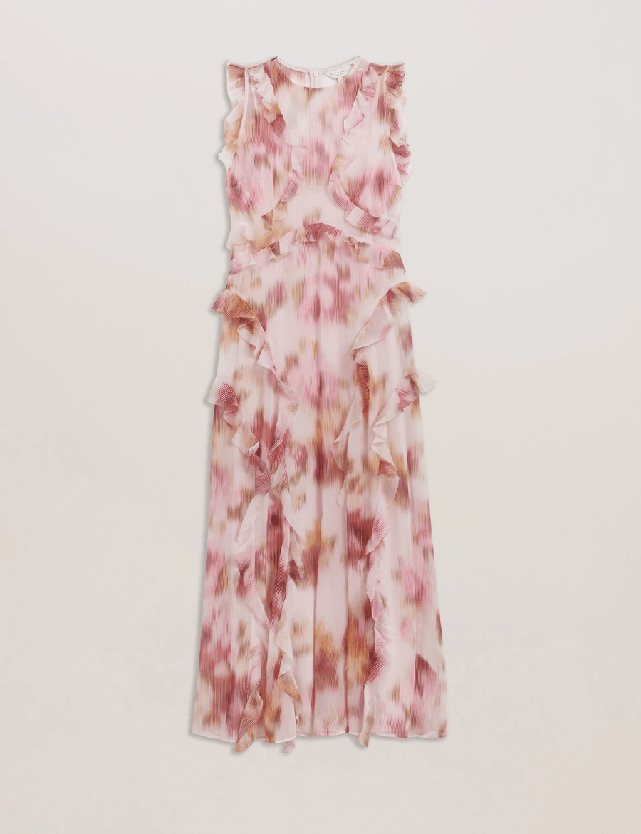 Unleash your feminine charm with the Ted Baker HISAKO | LT-PINK midi dress. This stunning piece is designed to elevate your summer wardrobe, making it perfect for garden parties, brunch dates, or casual outings. The captivating blurred floral print and graceful silhouette ensure you stand out in style.