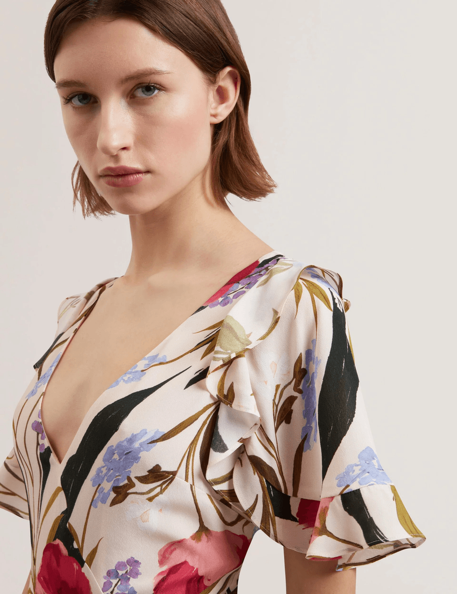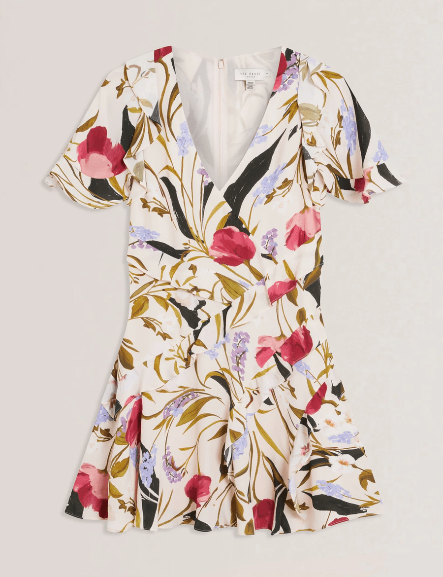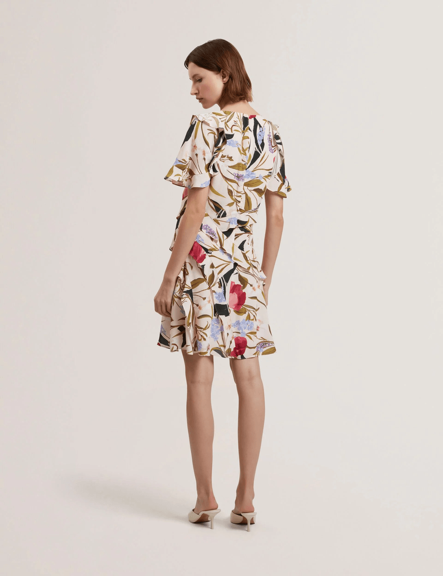 The Ted Baker ISSIIA | PL-PINK mini dress is designed for the modern woman who loves to make a statement. With its beautiful floral print and asymmetric frilled trims, this dress is not only fashionable but also versatile. Whether you're attending a wedding, a garden party, or a casual outing, this dress will have you looking chic and confident.