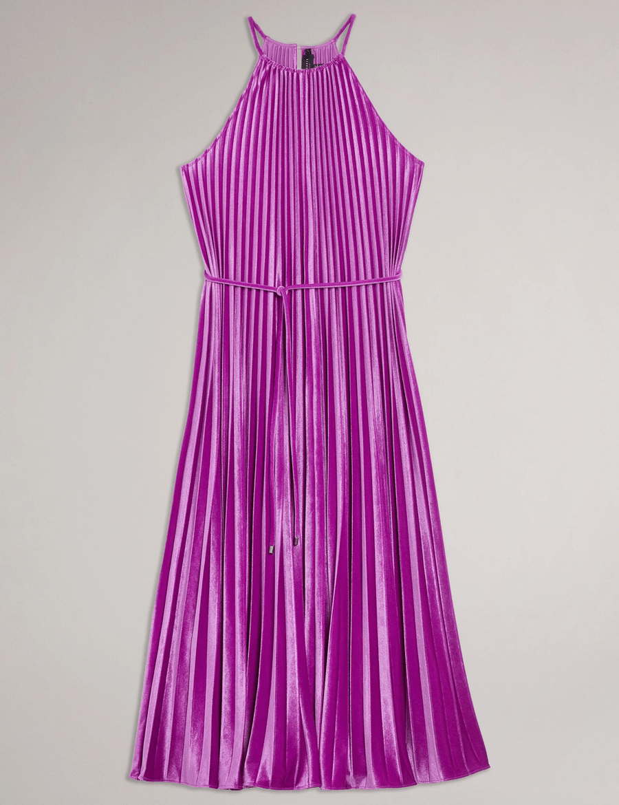 Step out in elegance with the Ted Baker KASSIAH | PURPLE. This stunning velvet midaxi dress is designed to make a lasting impression, featuring a flowing silhouette that beautifully cinches at the waist. Perfect for special occasions, this dress seamlessly combines luxury and sophistication.