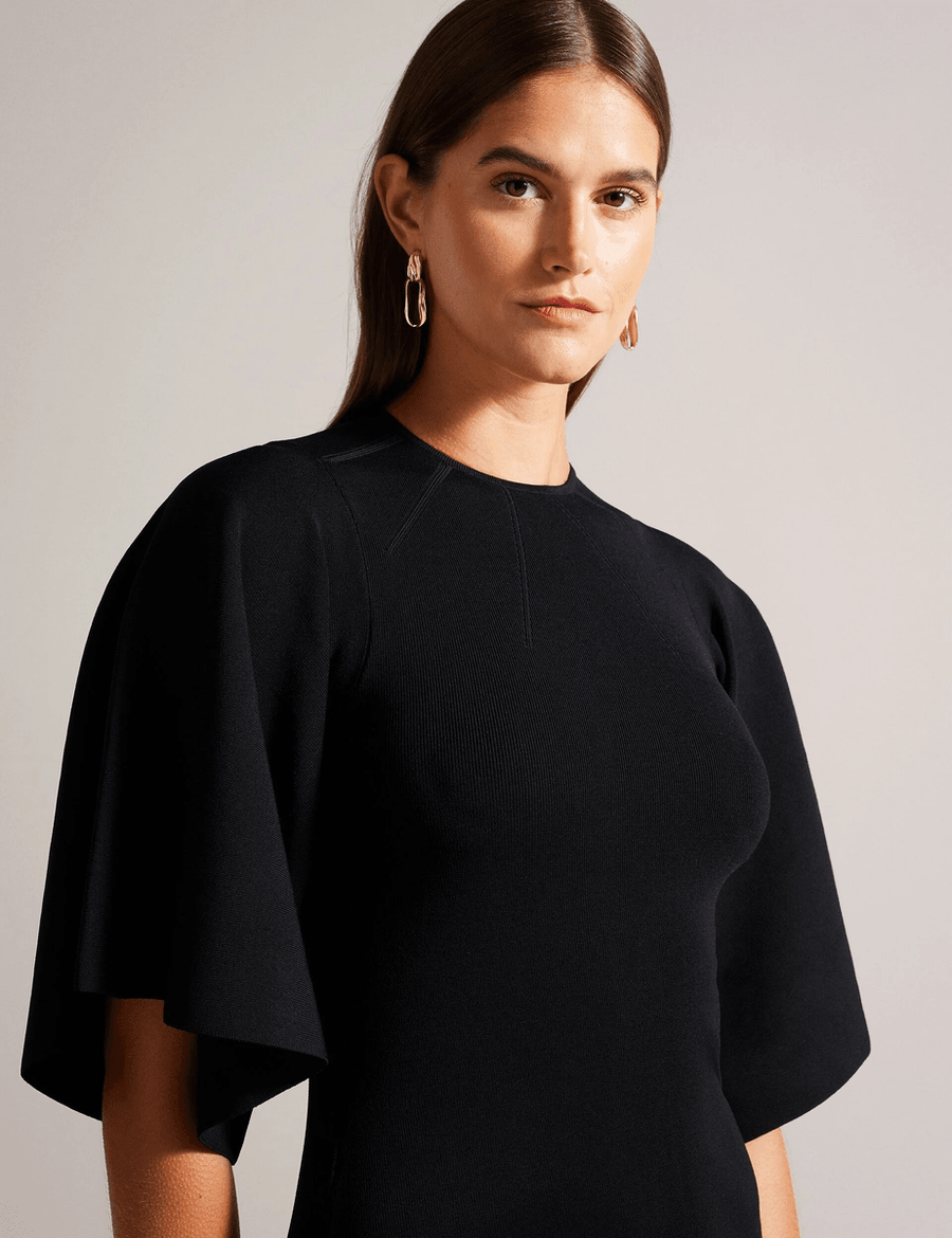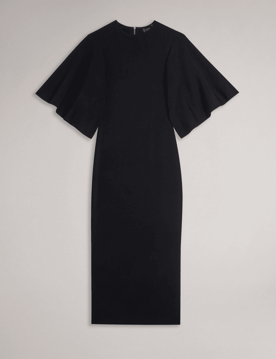 The Ted Baker LOUNIA dress features eye-catching oversized sleeves that create a striking silhouette while allowing for ease of movement. The crew neck design is complemented by stitch details that add subtle sophistication. This versatile midi dress can be styled simply with accessories, letting the garment shine as the centerpiece of your outfit.