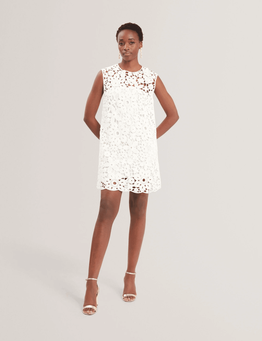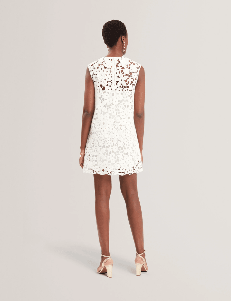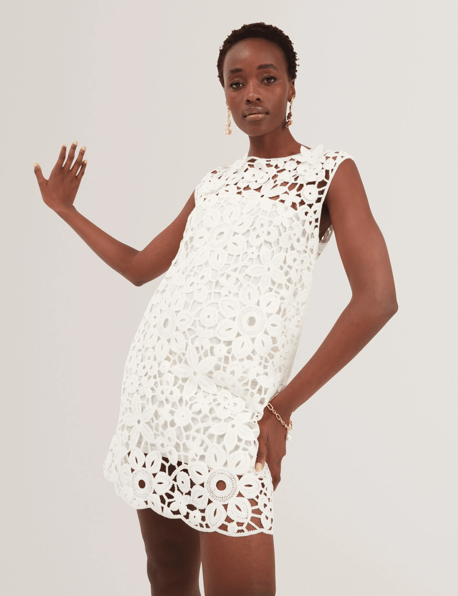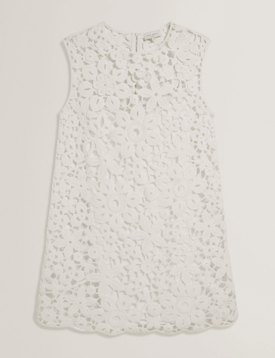 Discover the stunning Ted Baker MIIKKA | WHITE, a mini dress that combines elegance with modern flair. With its floral crochet knit and exquisite applique details, this piece is perfect for any occasion, from daytime outings to evening events.