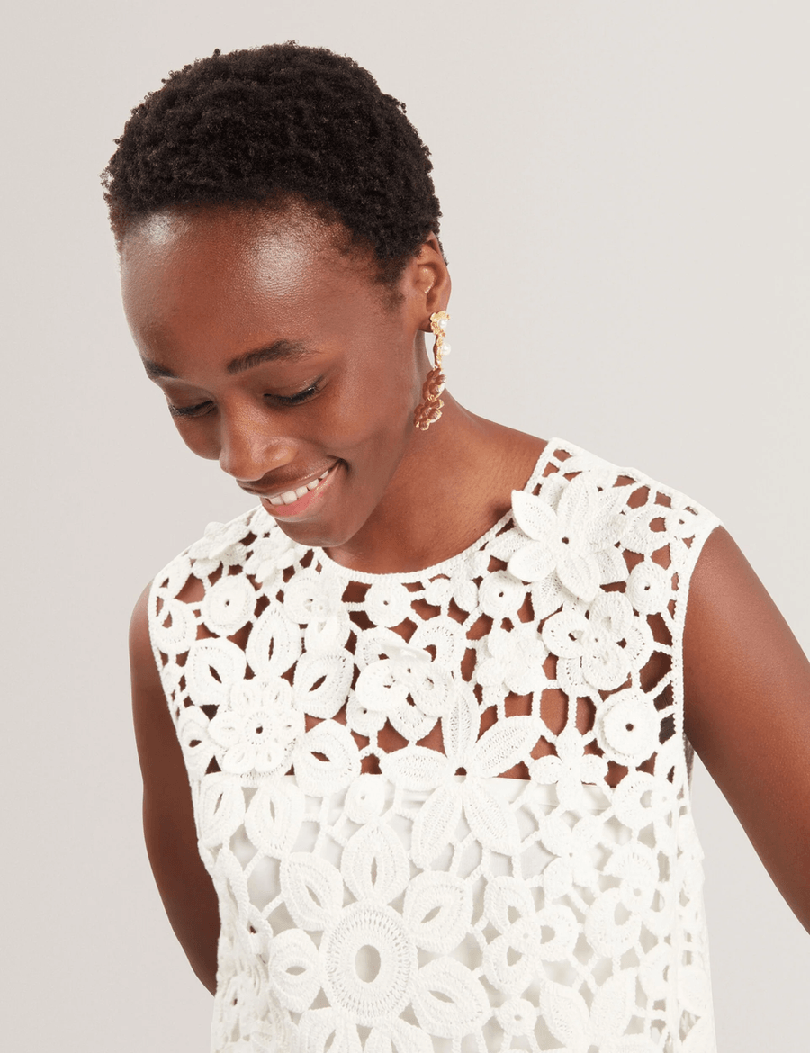 The Ted Baker MIIKKA | WHITE is designed for the modern woman who values both style and comfort. Crafted from high-quality materials, this dress showcases a beautiful floral crochet knit that is both breathable and lightweight. Whether you're attending a garden party or a casual brunch, this versatile mini dress will make you stand out.