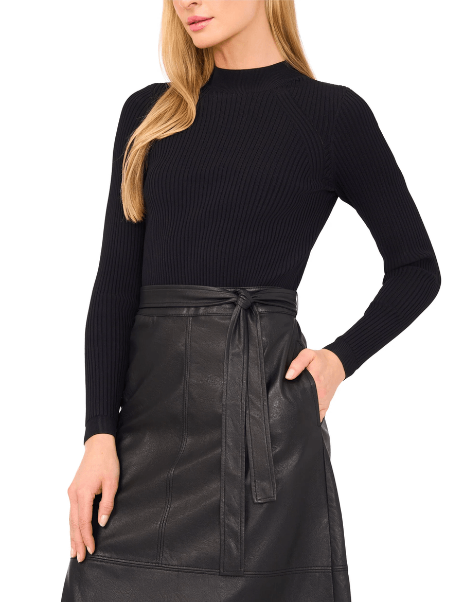 The Ted Baker ONEIDA | Rich Black combines boldness with elegance, making it a must-have for your wardrobe. The sleek mock neckline offers a modern touch that flatters any silhouette, while the faux leather skirt introduces an element of daring allure. Ideal for evening gatherings or upscale brunches, this piece seamlessly transitions from day to night.