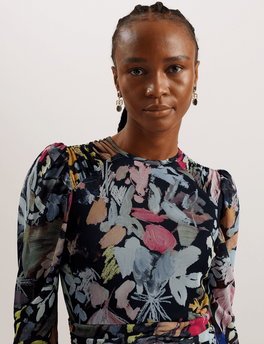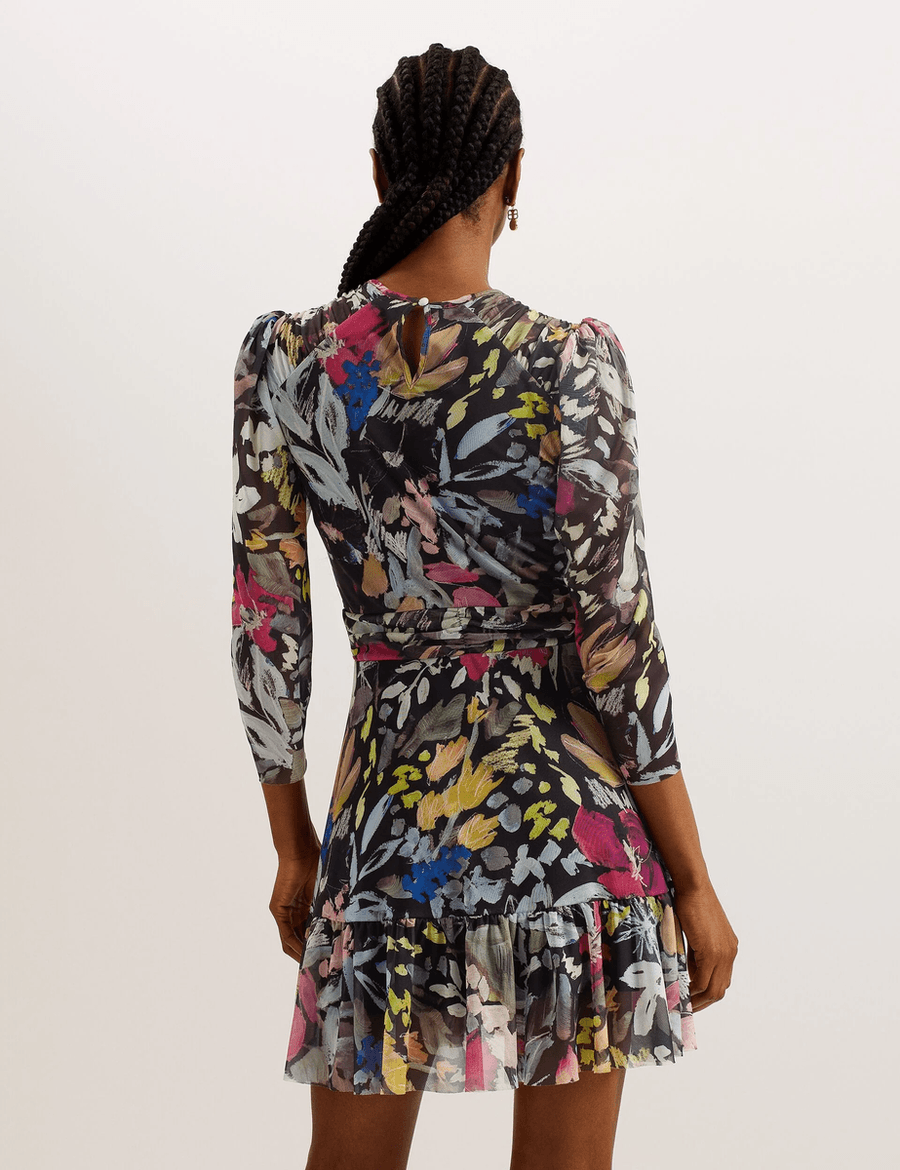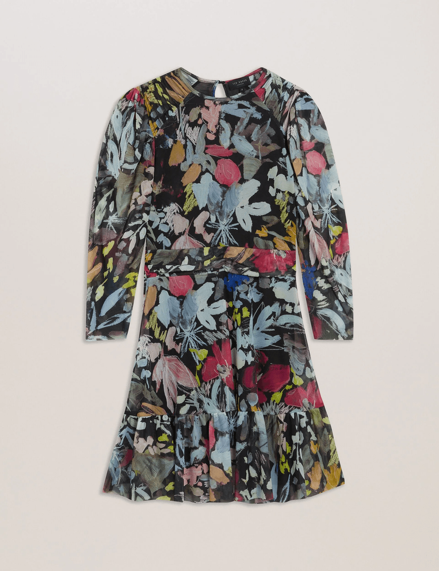 Step into style with the Ted Baker PAYSLYY | BLACK floral mini dress. This enchanting piece combines playful elegance with modern sophistication, making it the perfect addition to your wardrobe. Crafted from lightweight mesh material, this dress is designed to make you feel flirty and fabulous.