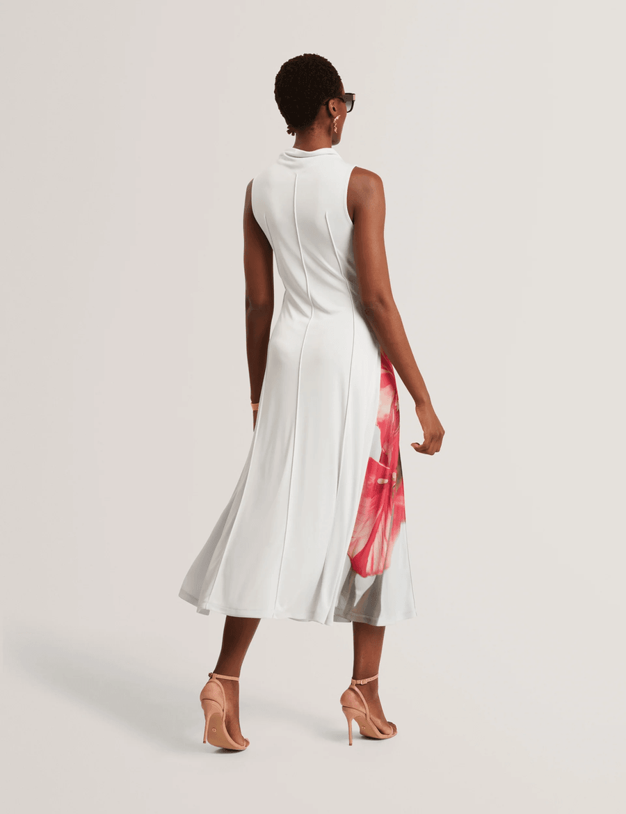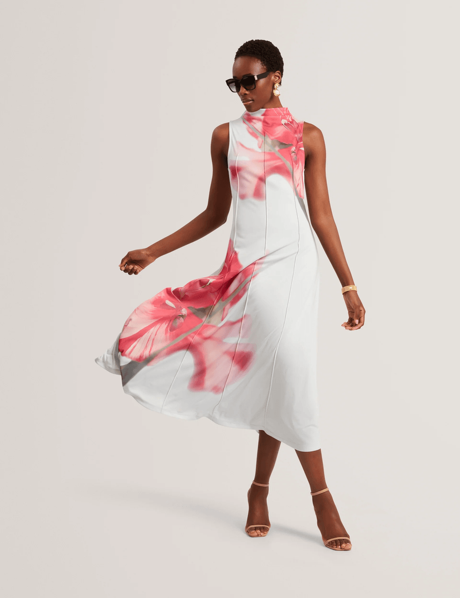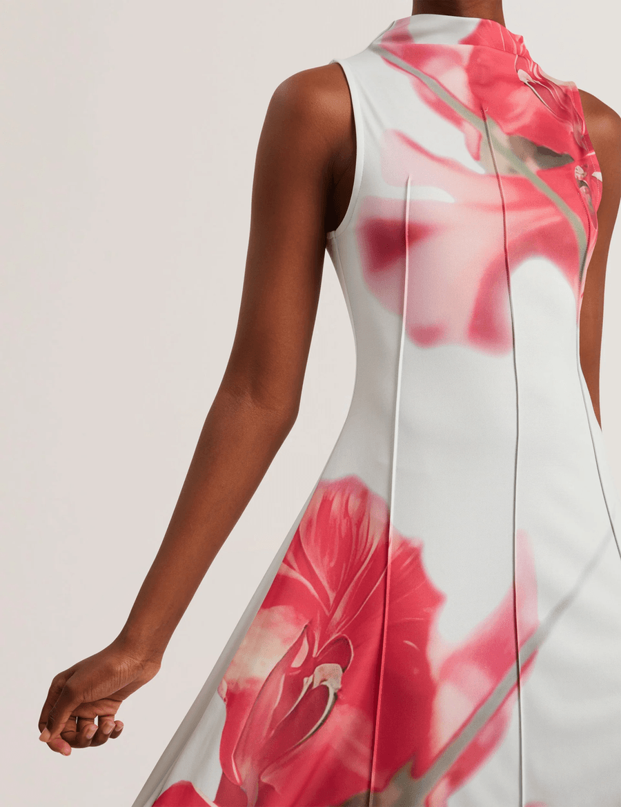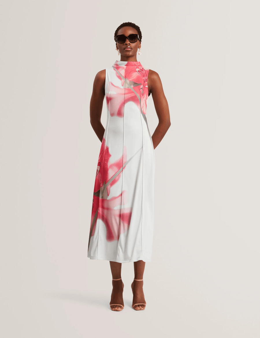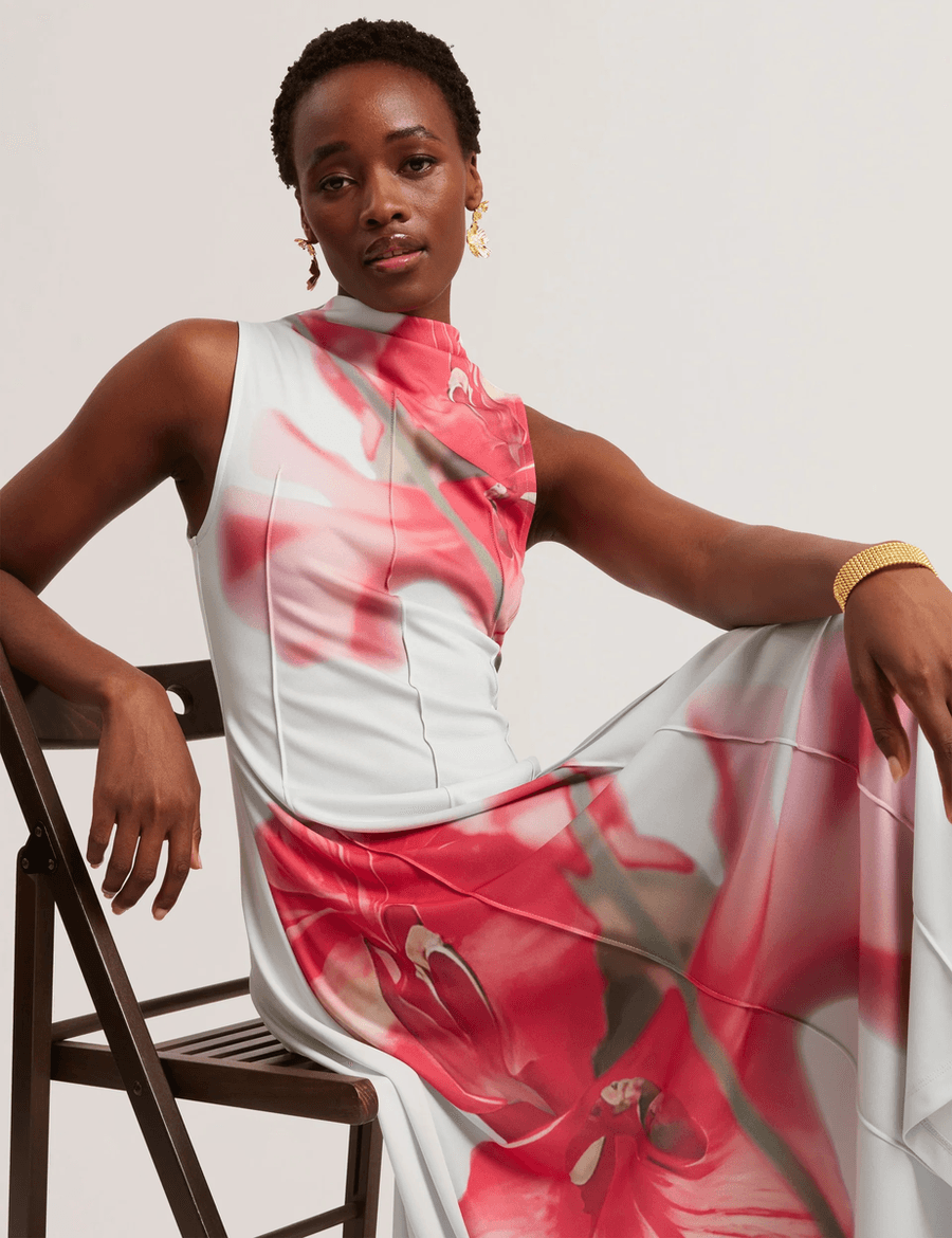 Discover the stunning Ted Baker REBEHKA | PL-BLUE sleeveless midaxi dress, designed to make a statement. Crafted from luxurious crepe jersey fabric, this dress features a large-scale floral graphic that brings a touch of elegance to your wardrobe.