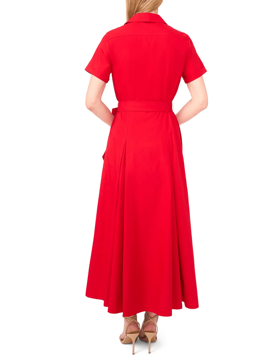 Ideal for various occasions, this shirt dress can be dressed up with heels or kept casual with sneakers. The vibrant salsa color adds a pop of personality, making it a standout piece in your collection. Experience the perfect combination of elegance and ease with this must-have dress.