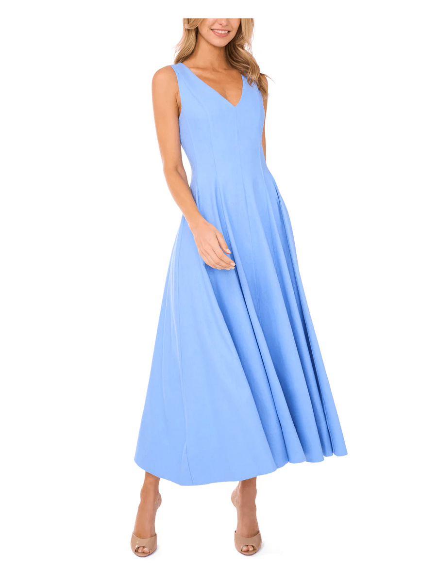Step into elegance with the Ted Baker SLEEVELESS V NECK PLEATED MAXI DRESS | HYDRANGEA. This stunning linen dress effortlessly combines comfort and sophistication, making it a must-have for your warm-weather wardrobe.