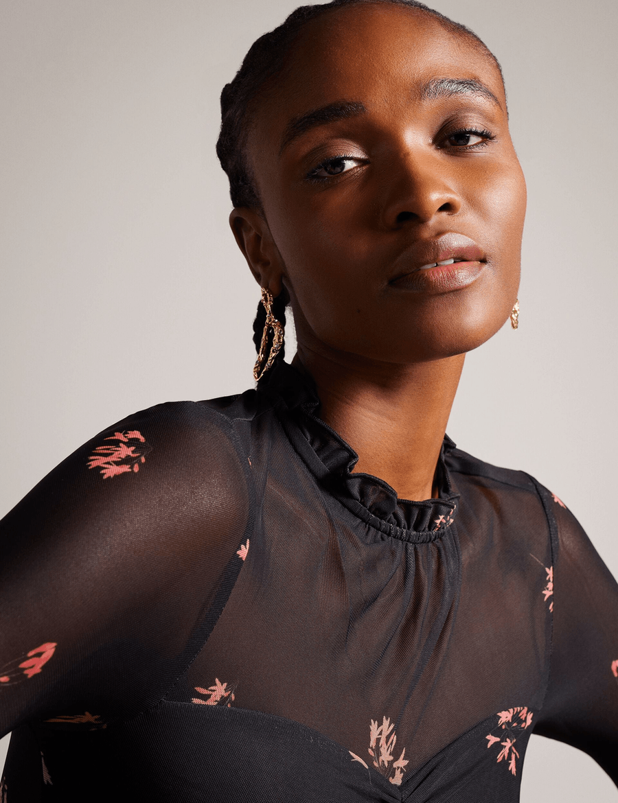 The Ted Baker SUSENAA is not just a dress; it's a statement. Crafted with a delicate mesh overlay, this piece exudes elegance while ensuring comfort. The high neck design enhances your neckline, making it suitable for both casual outings and formal events.