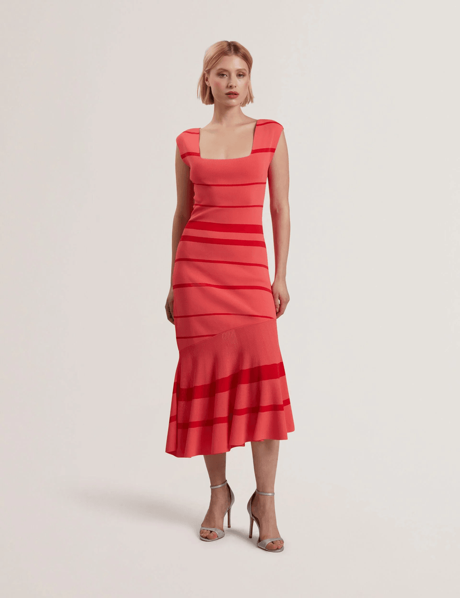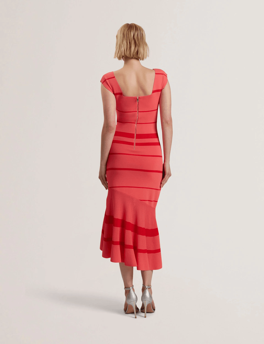 Discover the stunning Ted Baker TILLEEA | CORAL, a bodycon midi dress that combines elegance with contemporary flair. Perfect for any occasion, this dress enhances your silhouette and provides ultimate comfort with its stretchy knitted fabric.