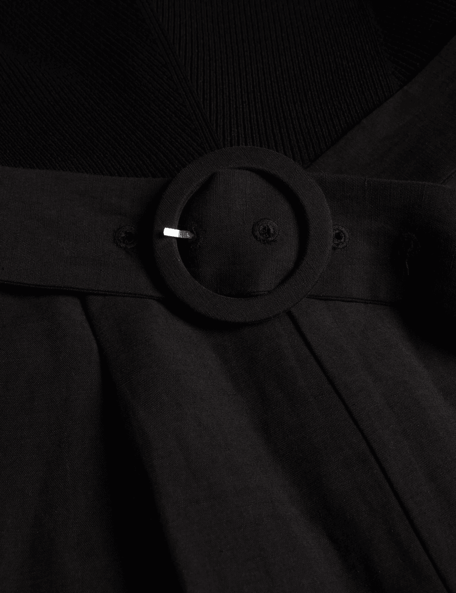 Model Silvia, standing at 5'11" (1.8m), showcases the jumpsuit in black while wearing a Ted size 1. This outfit is versatile enough to be dressed up with heels or kept casual with flats.