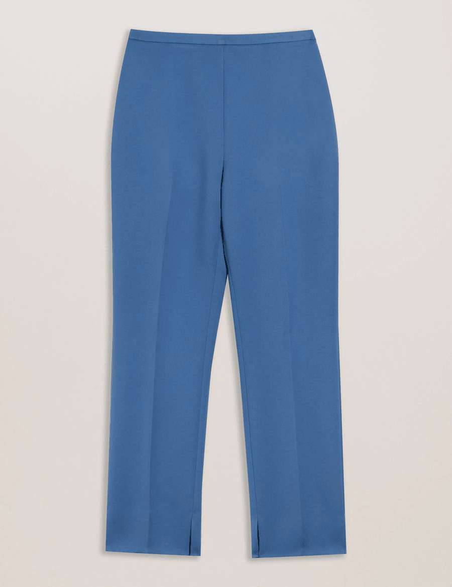 The Ted Baker AKENIT | BLUE trousers are designed with versatility in mind. The satin fabric not only feels exquisite against your skin but also drapes beautifully, making them ideal for both work and evening events. Pair them with a tailored blouse for the office, or dress them up with a stylish top for a night out. Amy, who is 5'9.5" (1.77m), wears a Ted size 1, showcasing how these trousers cater to various body types.