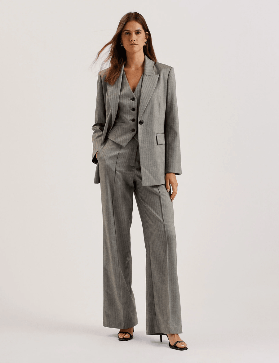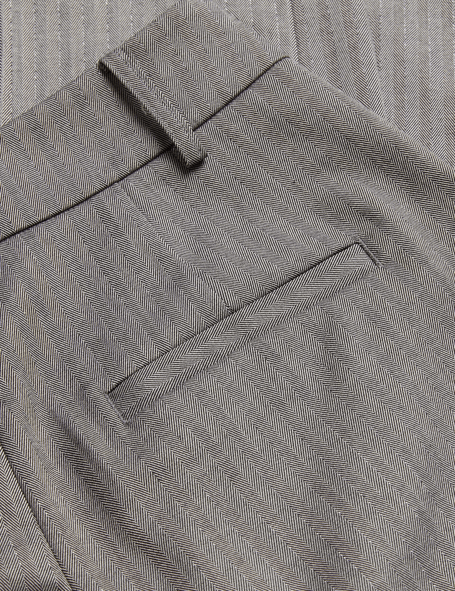 Discover the perfect blend of style and sophistication with the Ted Baker KOAT in DK-GREY. These tailored trousers are designed to make a statement, featuring a chic herringbone striped pattern that adds a touch of elegance to any outfit.
