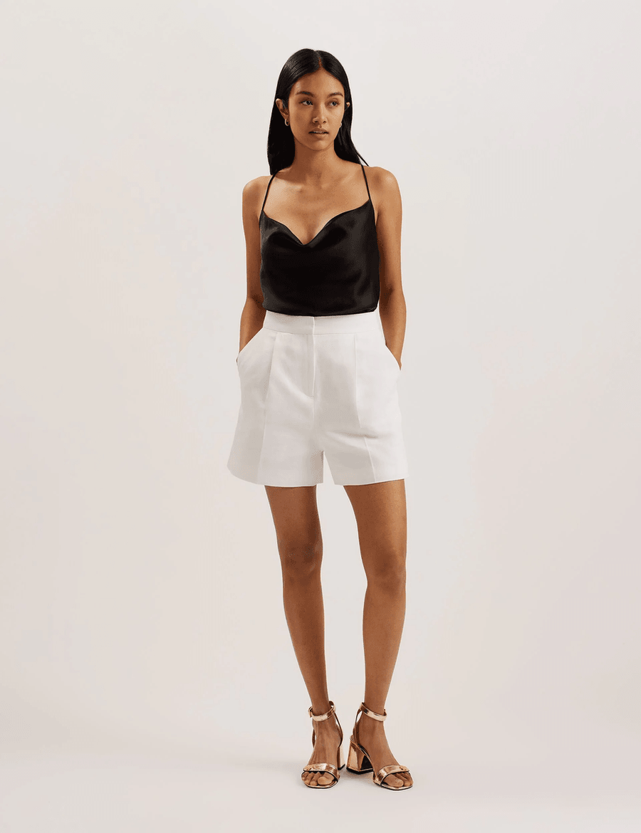 The Ted Baker MUSUBSH | WHITE shorts are designed for the modern individual who values both style and comfort. With May standing at 5'8.5" (1.74m) and wearing a Ted size 1, these shorts are perfect for creating a chic, put-together look. Pair them with a simple blouse for a day out or dress them up with a tailored jacket for evening events. The versatile white color ensures they can be matched with almost anything in your wardrobe.