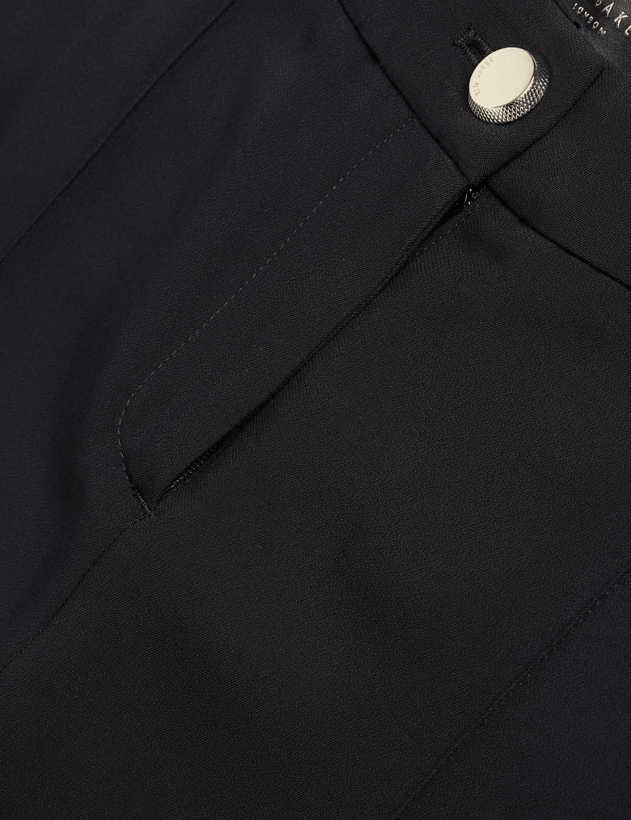 The Ted Baker RAEET | BLACK trousers are impeccably cut to offer a flattering silhouette. The straight fit design ensures comfort and elegance, allowing you to move freely while looking stylish. Whether you're dressing up for a business meeting or going out for a casual lunch, these trousers are the perfect partner for any top.