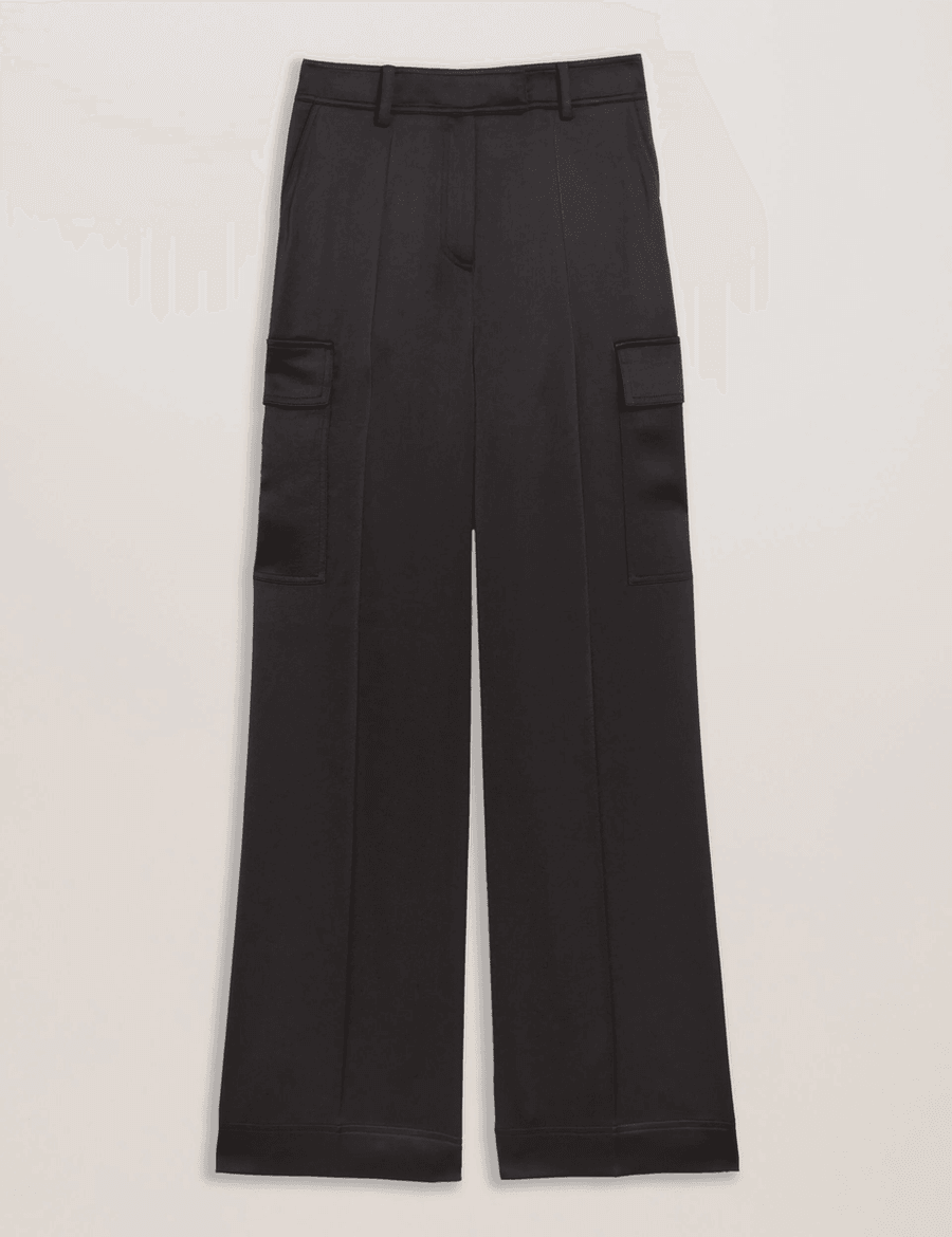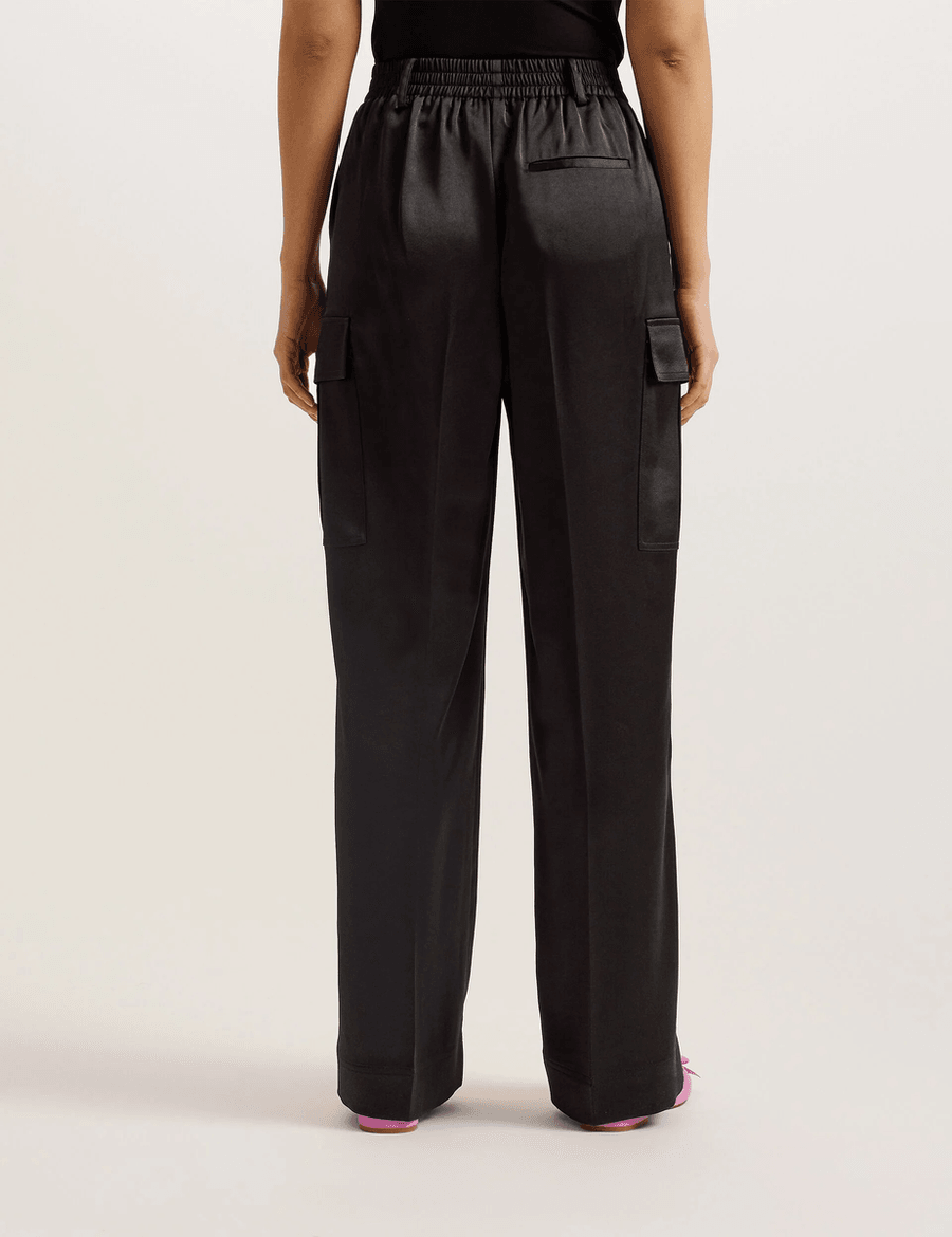 Step into sophistication with the Ted Baker SIMETA | BLACK wide leg trousers. Designed to showcase your unique style, these trousers blend elegance with functionality, making them a must-have for any wardrobe. The sleek lines and contemporary cargo pockets add an edgy twist to a classic silhouette.