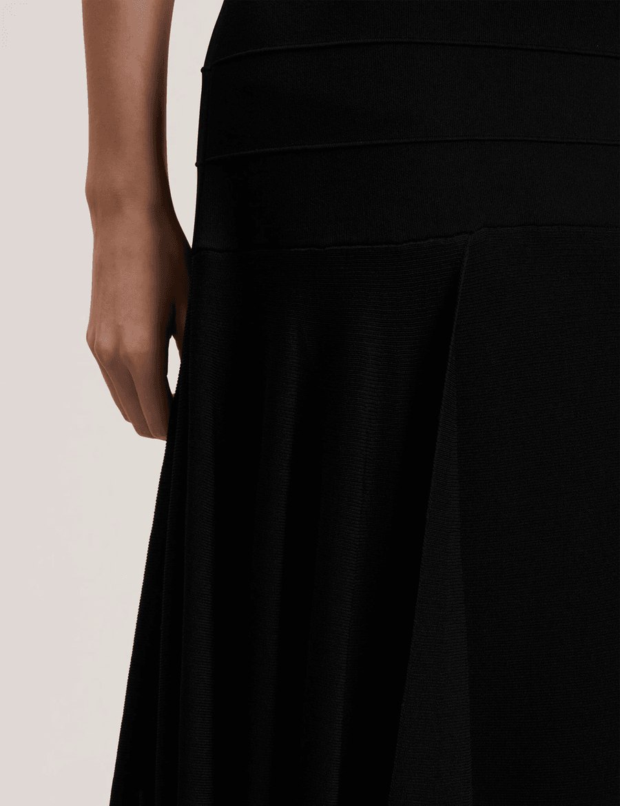 Discover the perfect blend of elegance and contemporary style with the Ted Baker LAURRIE | BLACK knitted midi skirt. This stunning piece features a slip silhouette that accentuates your natural shape, making it an essential addition to your wardrobe.