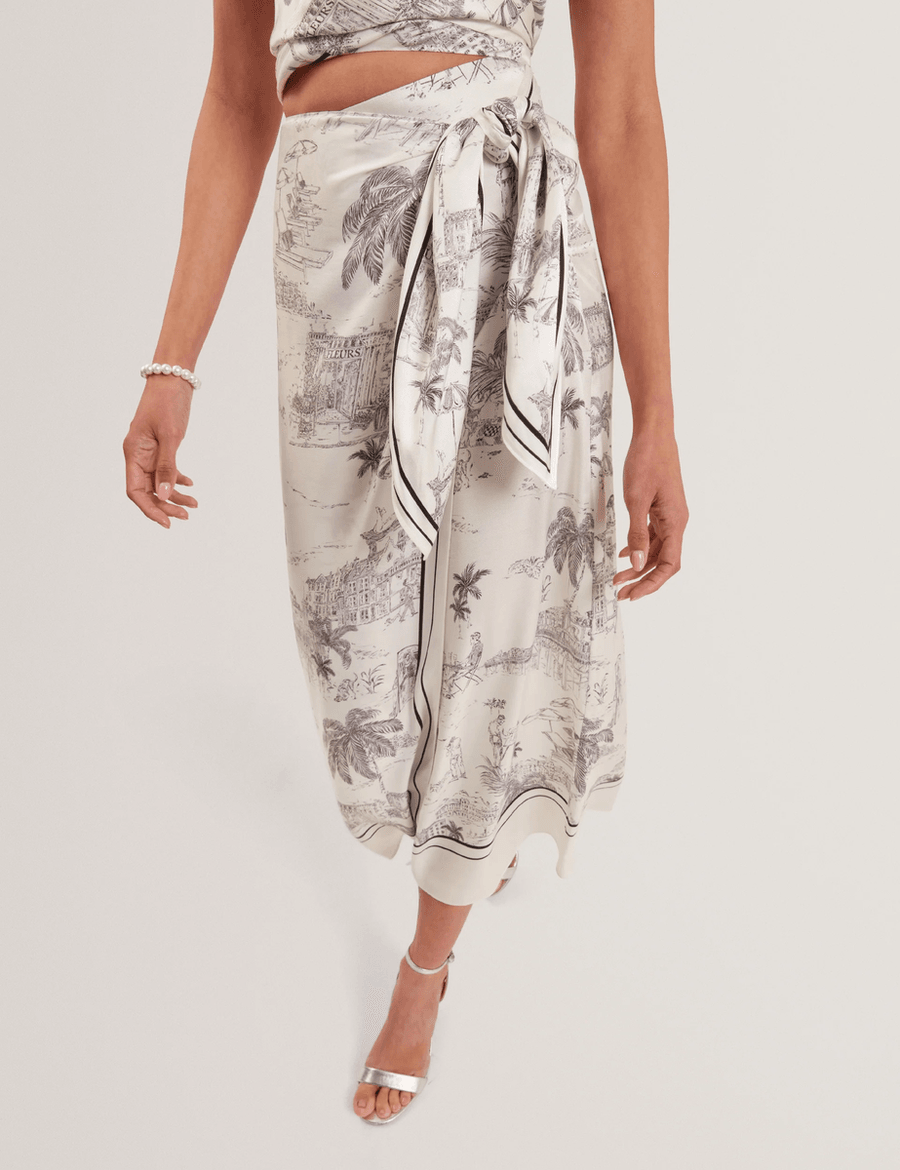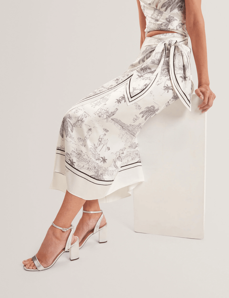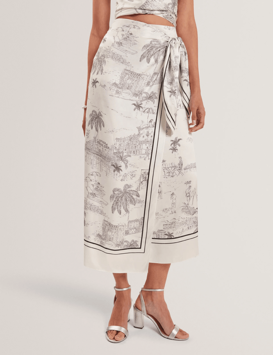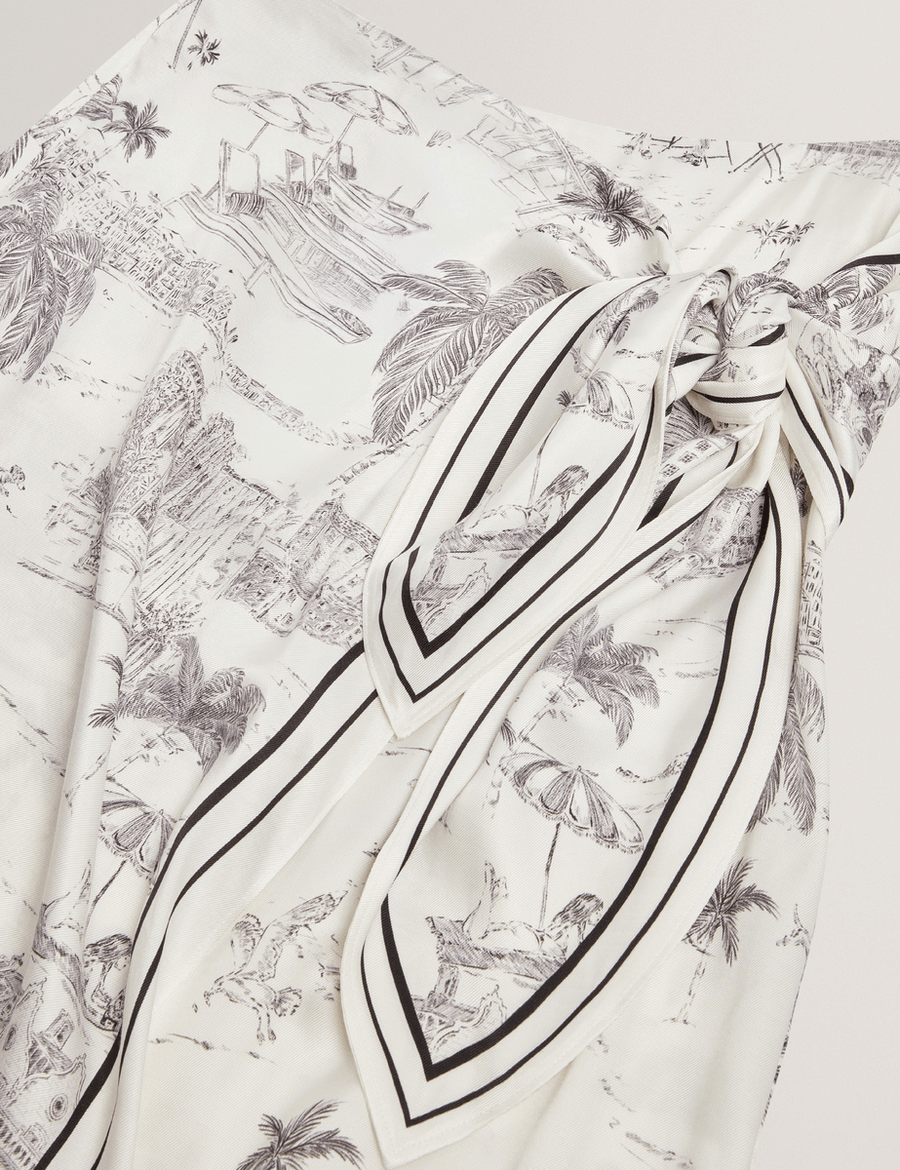 Discover the stunning Ted Baker MELVA | IVORY midi skirt, a must-have addition to your wardrobe. This beautifully crafted skirt features an enchanting beach print that captures the essence of summer, perfect for any occasion.