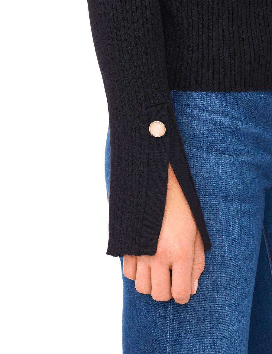The Ted Baker ALIVIA | RICH BLACK is perfect for layering, making it an essential addition to your closet. Whether you're dressing up for a meeting or heading out for a casual weekend, this piece offers subtle elegance that complements any look. Pair it with tailored trousers for a chic office outfit or with your favorite jeans for a relaxed vibe.