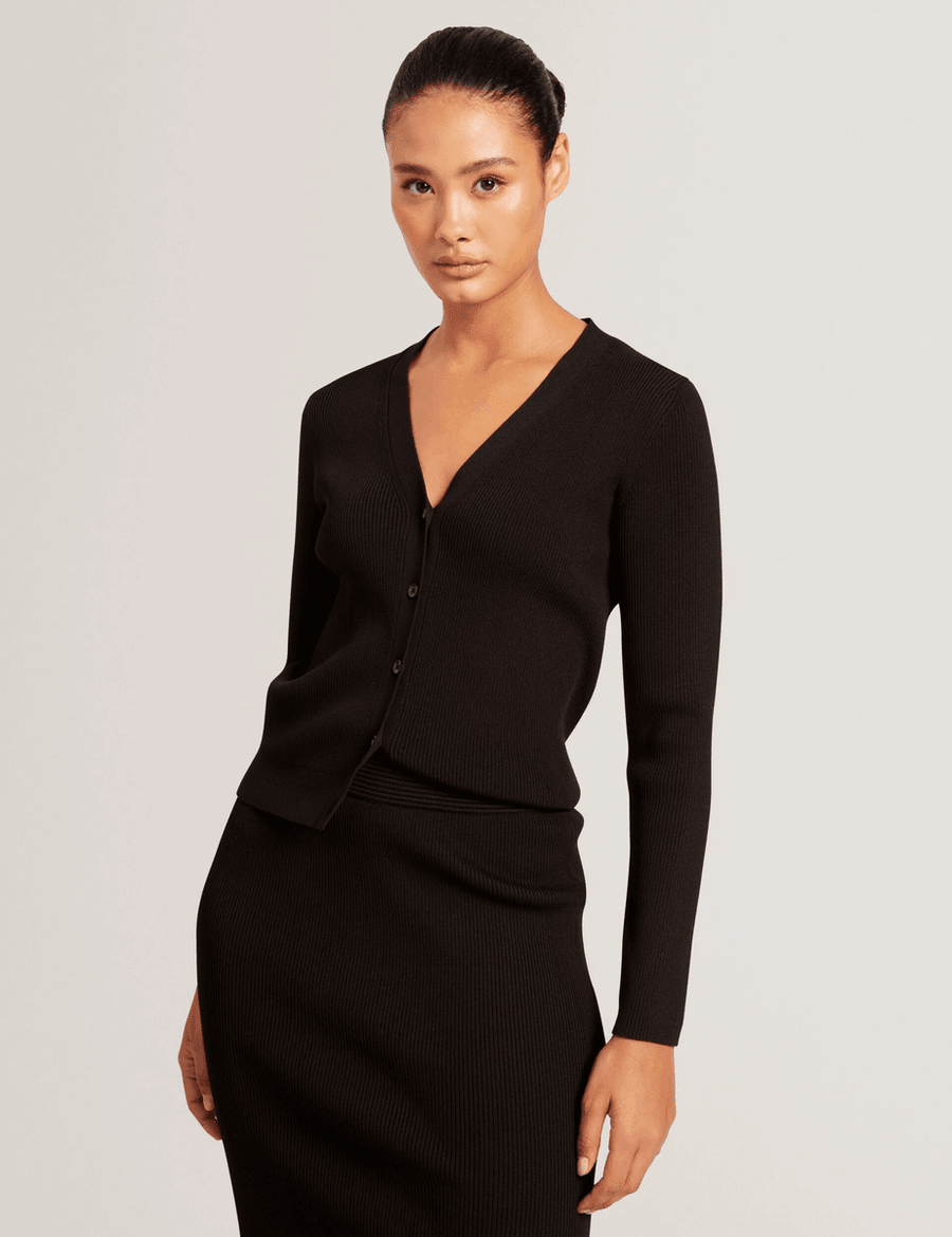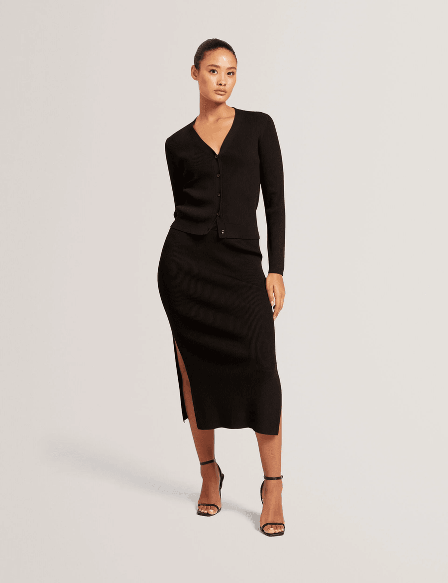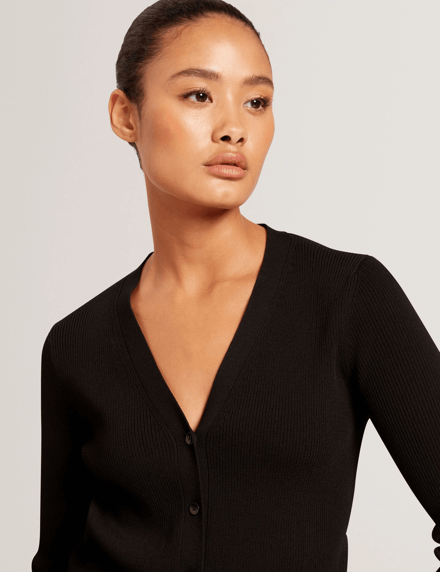 Ted Baker V-Neck Cardigan with Rib | Rich Black