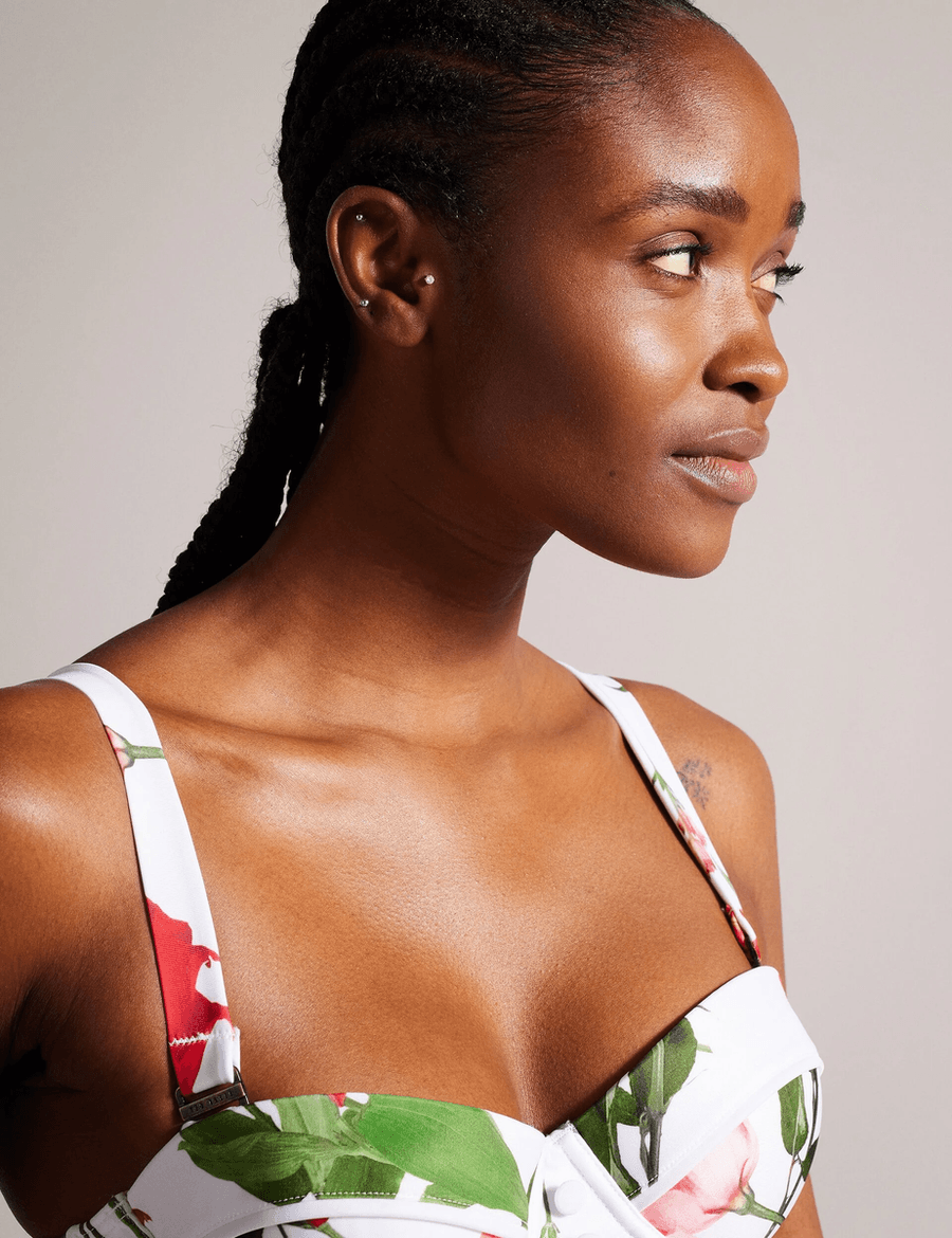 Discover the perfect blend of style and functionality with the Ted Baker LARANAA swimsuit in white. This chic and flattering design is crafted to elevate your beach wardrobe while offering unparalleled support.