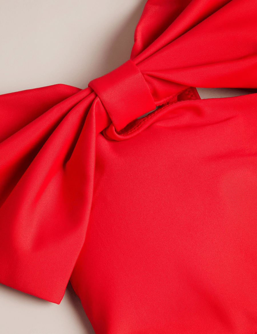 Embrace the sun in style with the Ted Baker LIENNAA | RED bikini top. This chic one-shoulder design, adorned with a playful bow embellishment, is the perfect choice for lounging by the pool or sipping cocktails on the beach. Stand out and make a statement with this fashionable swimwear essential.