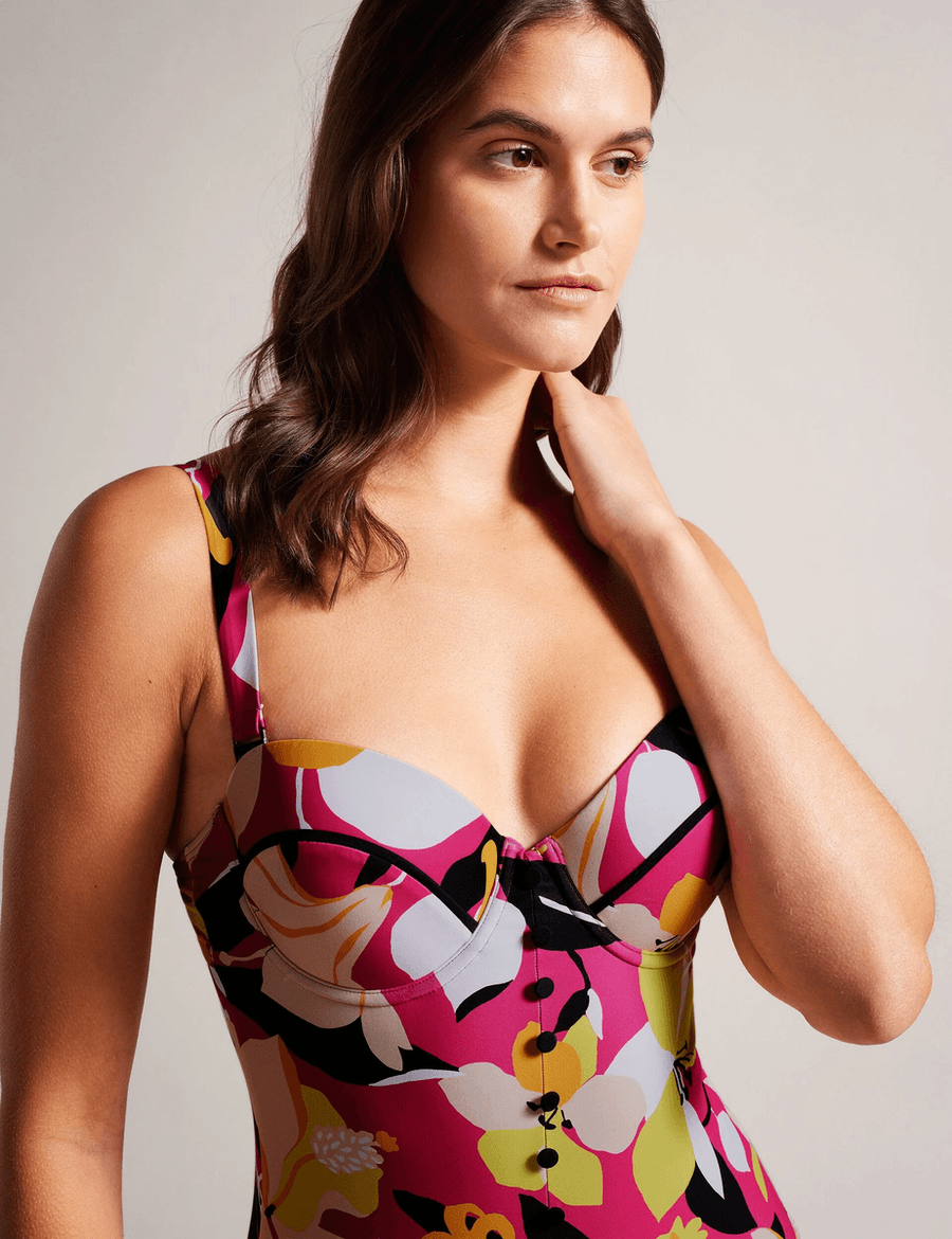 Get ready to make a splash this summer with the Ted Baker ZAYLY | LT-NUDE swimsuit. Designed to turn heads at the beach, this stunning floral swimsuit combines style and functionality for the perfect swimwear experience.