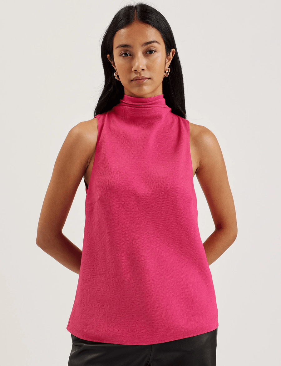 Discover the stunning Ted Baker ANINI | FUCHSIA, a must-have sleeveless top designed to blend style and comfort. Featuring a unique seersucker textured fabric, this top adds a playful yet sophisticated touch to any outfit.