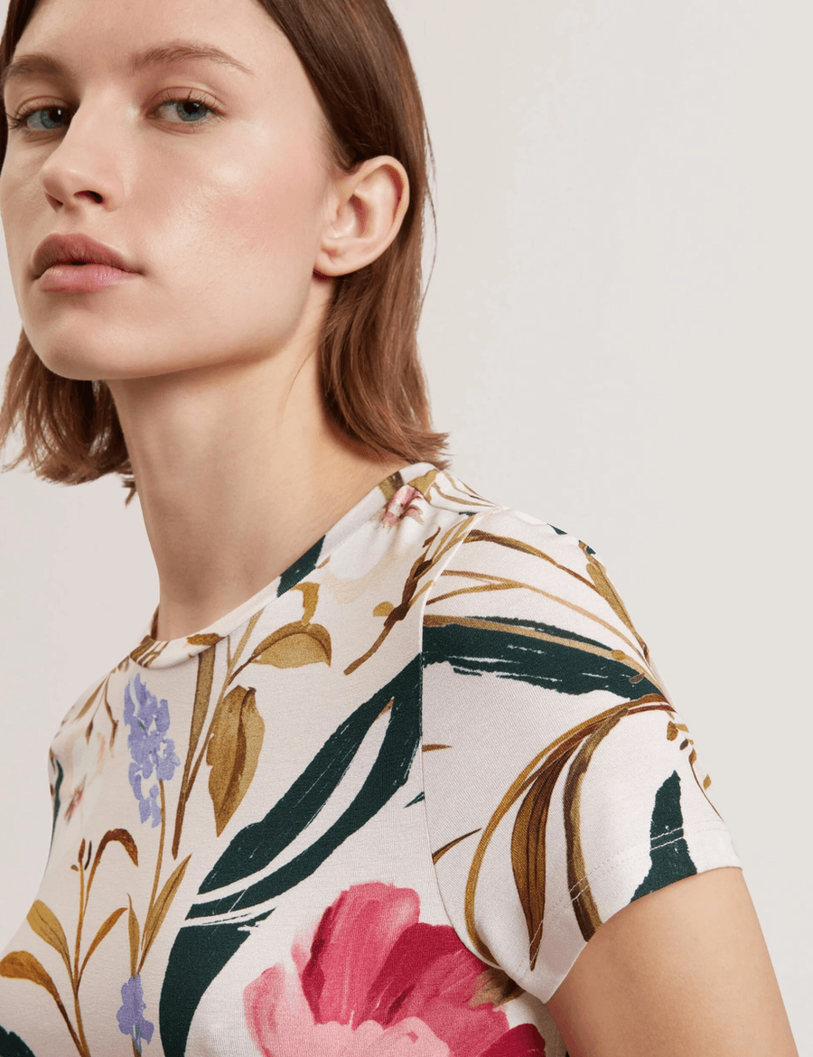 This floral print t-shirt is ideal for those who appreciate style without sacrificing comfort. Whether you're heading out for brunch or enjoying a day in the park, the breathable fabric ensures you stay cool and stylish.