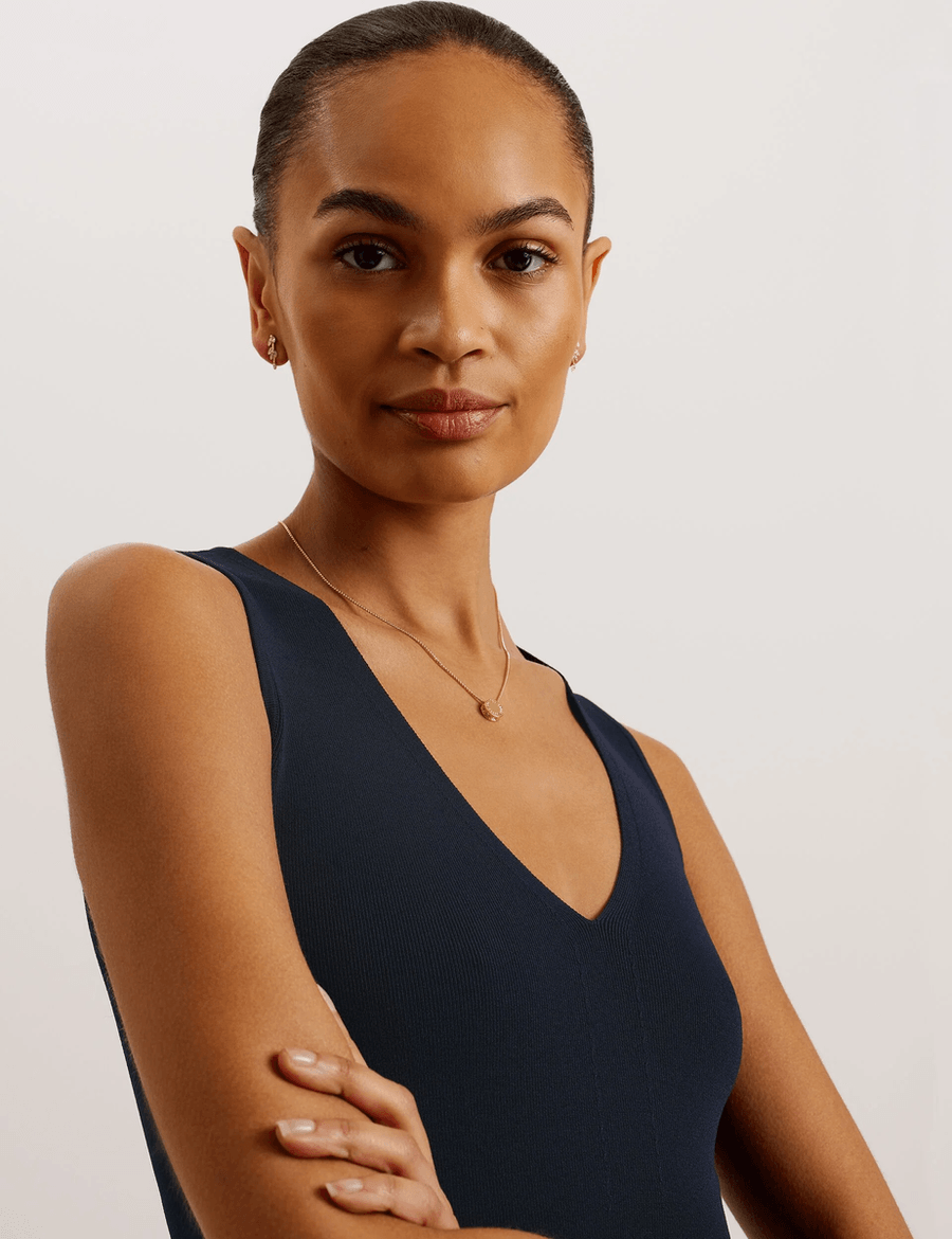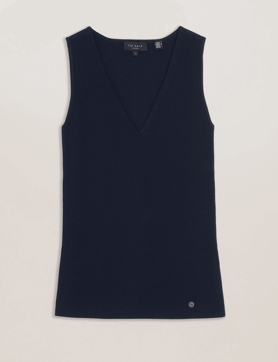 The Ted Baker JOSIIY | NAVY combines style and sustainability effortlessly. Its slim fit and elegant v-neck design create a flattering silhouette that suits any occasion. Whether you're dressing up for a night out or keeping it casual, this vest top adapts to your style.