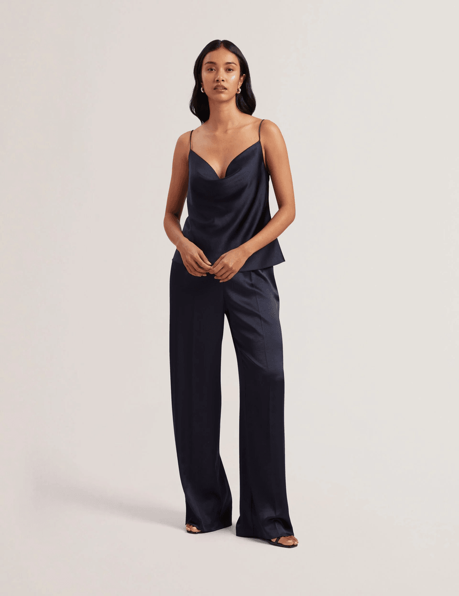 The Ted Baker KITI | NAVY cami top features a glossy satin fabric that drapes beautifully, making it perfect for both casual outings and elegant evenings. The alluring low cowl neckline draws attention, while the adjustable spaghetti shoulder straps ensure a personalized fit. Whether you're dressing it up with a skirt or keeping it casual with jeans, this versatile piece is a must-have addition to your collection.