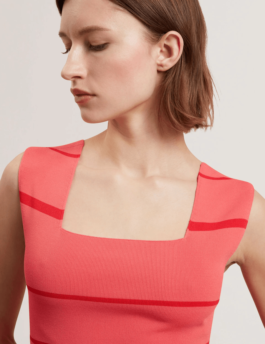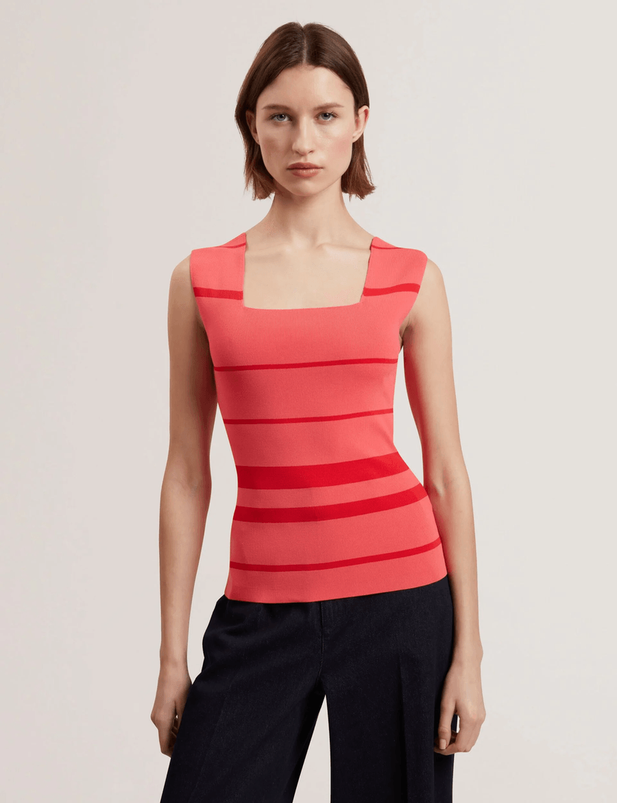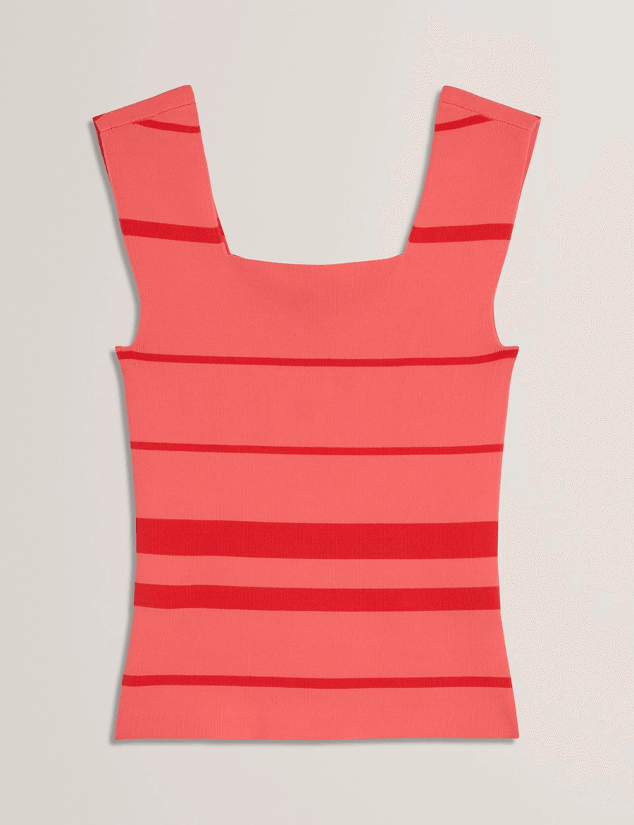 Discover the stunning Ted Baker LAYDAA | CORAL, a must-have addition to your wardrobe. This sleeveless top combines a chic mixed stripe design with a comfortable knitted fabric, making it perfect for any occasion.