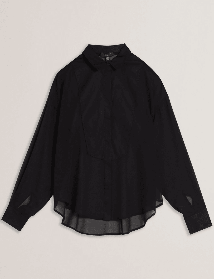 Discover the elegance of the Ted Baker LECHOSA | BLACK, a stunning long sleeve blouse that effortlessly combines style and comfort. Crafted from sheer woven fabric, this blouse features a chic bib-style front that adds a touch of sophistication to any outfit.