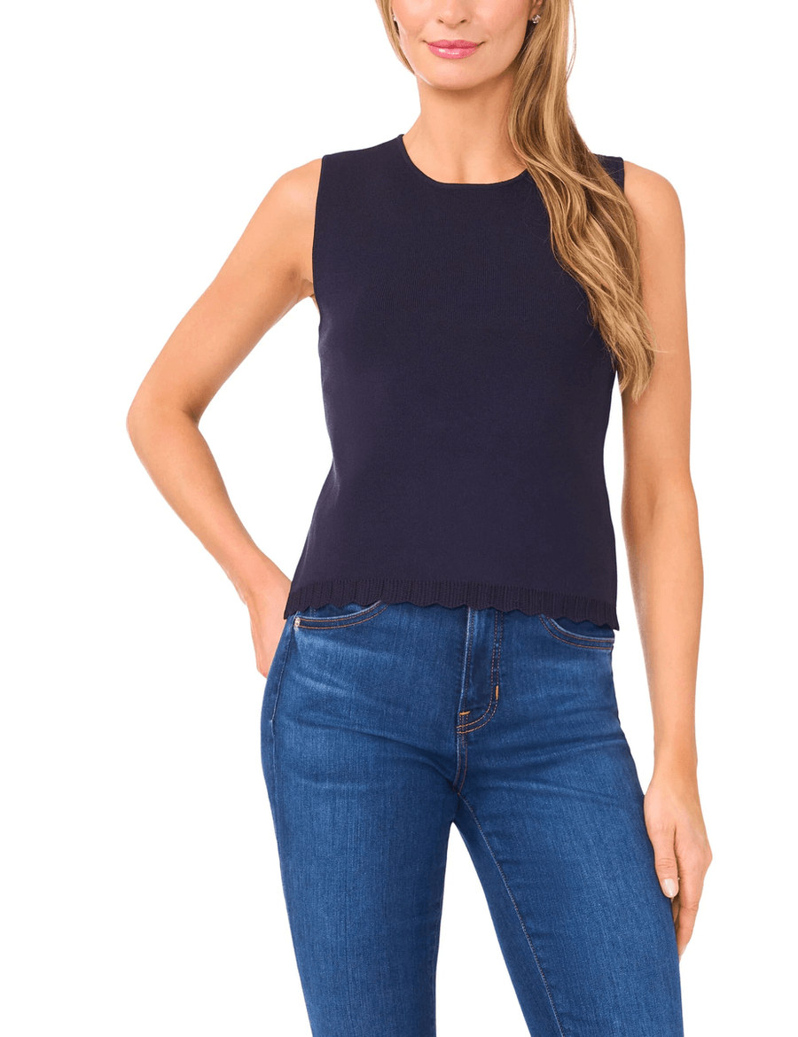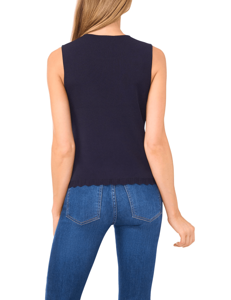 The Ted Baker SANDIE | BARITONE BLUE is crafted from lightweight material, making it easy to wear throughout the day. Its clean silhouette and scalloped edges create a flattering fit that accentuates your figure. Whether paired with jeans for a relaxed look or a tailored skirt for a sophisticated ensemble, this shell top promises to elevate your style effortlessly.