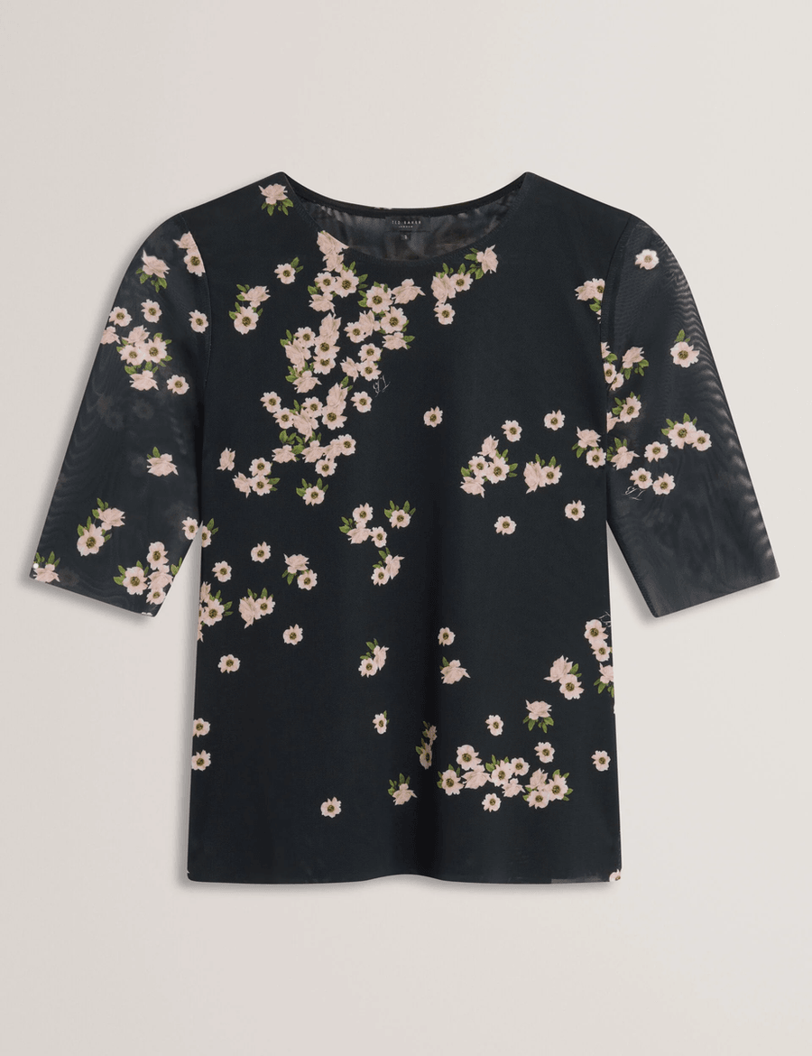 Ted Baker SHORT SLEEVE MESH TOP | RICH BLACK
