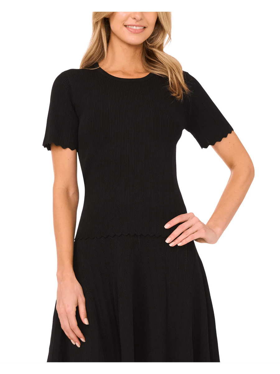 Don't miss out on this timeless addition to your collection. Shop the Ted Baker SHORT SLEEVE POINTELLE & RIB TOP | RICH BLACK today and embrace the effortless elegance it brings to your style!
