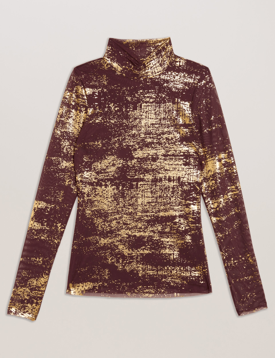 Planning a night out with the girls? The Ted Baker SOFIY | DK-RED is the perfect addition to your wardrobe. Designed to dazzle, this top features a stunning metallic foil print that adds an irresistible shimmer to your look.
