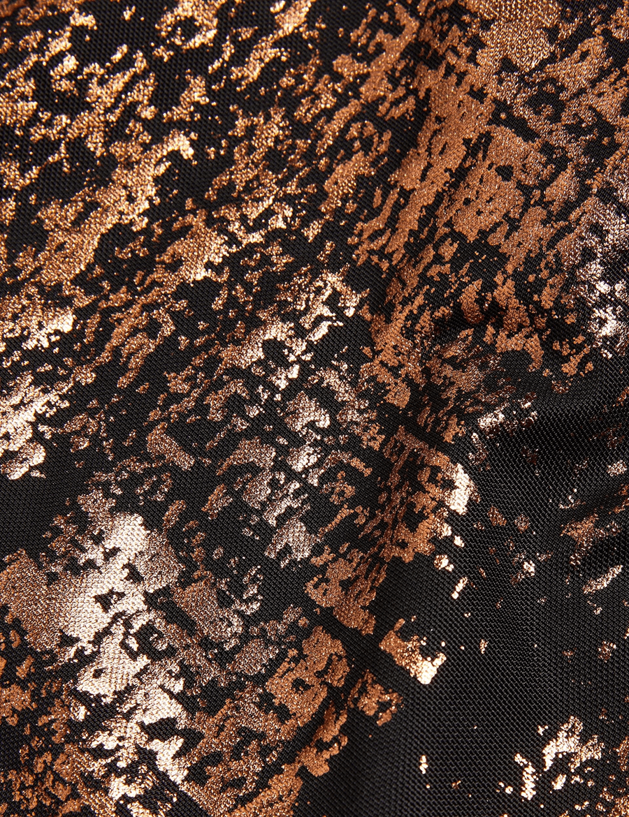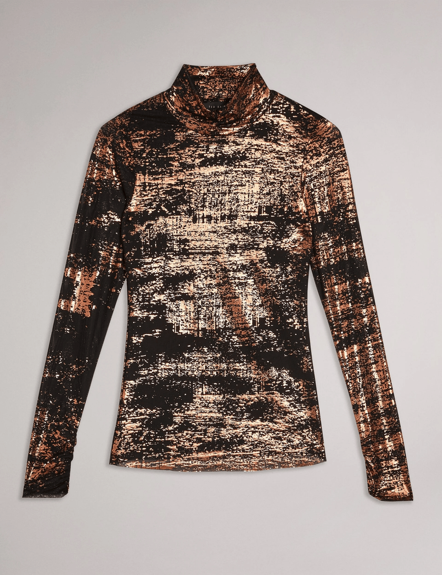 Ready to make a statement on your next girls' night out? The Ted Baker SOFIY | JET-BLACK top is your go-to choice for an unforgettable evening. With its stunning metallic foil print, this top exudes irresistible shimmer that’s sure to get the party started.
