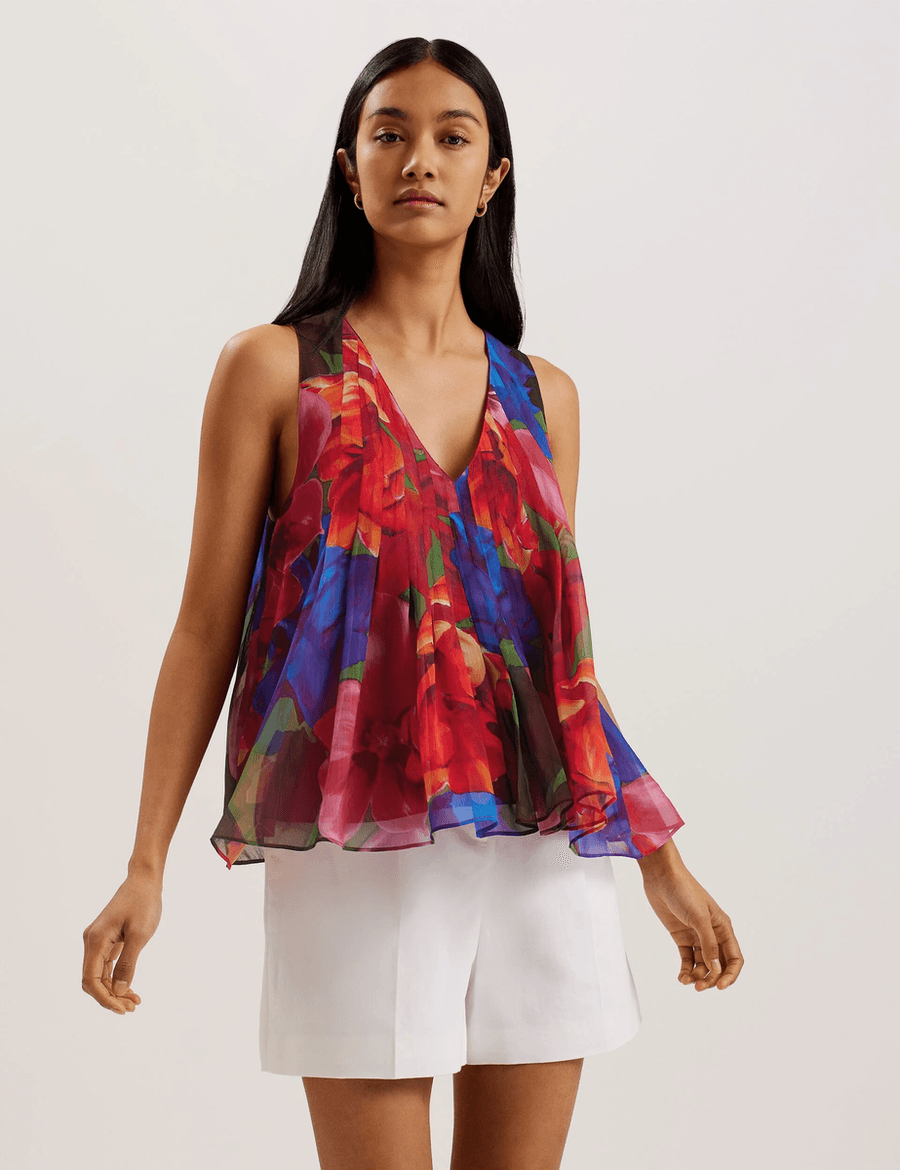 Step into a world of vibrant style with the Ted Baker VERNOGE | MULTICOL. This stunning sleeveless top embodies tropical elegance and is designed to elevate your wardrobe. Ideal for balmy days or any occasion that calls for a fresh pop of color, this piece is a must-have for anyone who loves to embrace a carefree spirit.