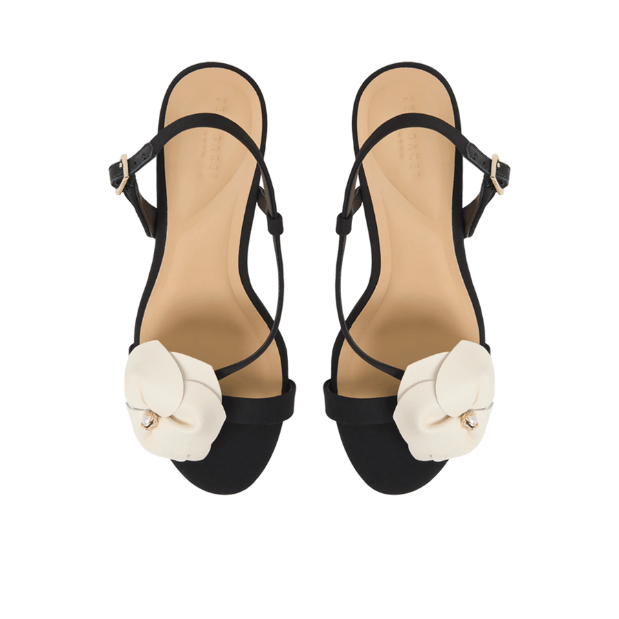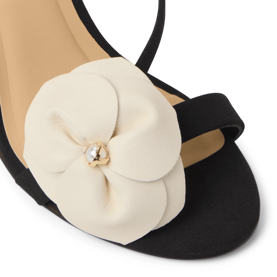 The Ted Baker JULIETTE | BLACK seamlessly combines style and comfort, making it your go-to sandal for events big and small. The asymmetric crepe upper not only catches the eye but also provides a modern twist on a classic design. With its almond toe and decorative flower topped with a T pearl charm, you’ll stand out at any gathering.