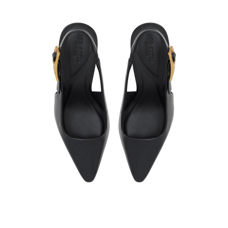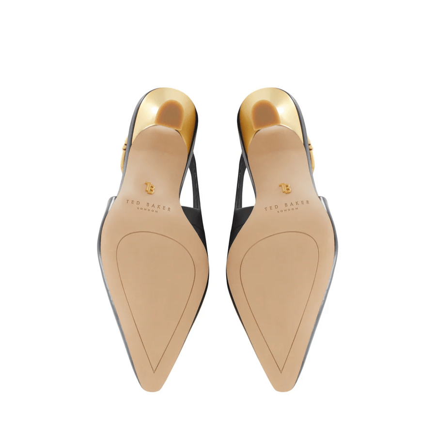 The Ted Baker LOLA T-BUCKLE | BLACK is not just a pair of shoes; it’s a statement piece. The luxurious smooth leather upper ensures durability and a polished look. The metallic gold accents of the T-buckle beautifully contrast with the classic black, making these pumps a must-have for any fashion-forward wardrobe.