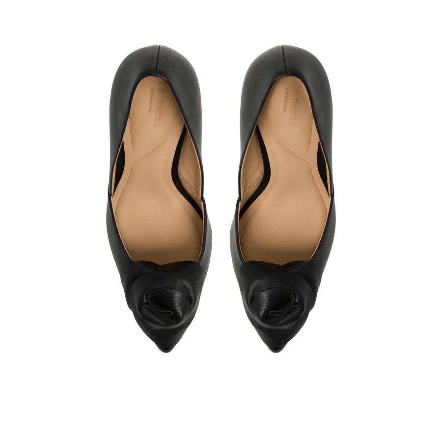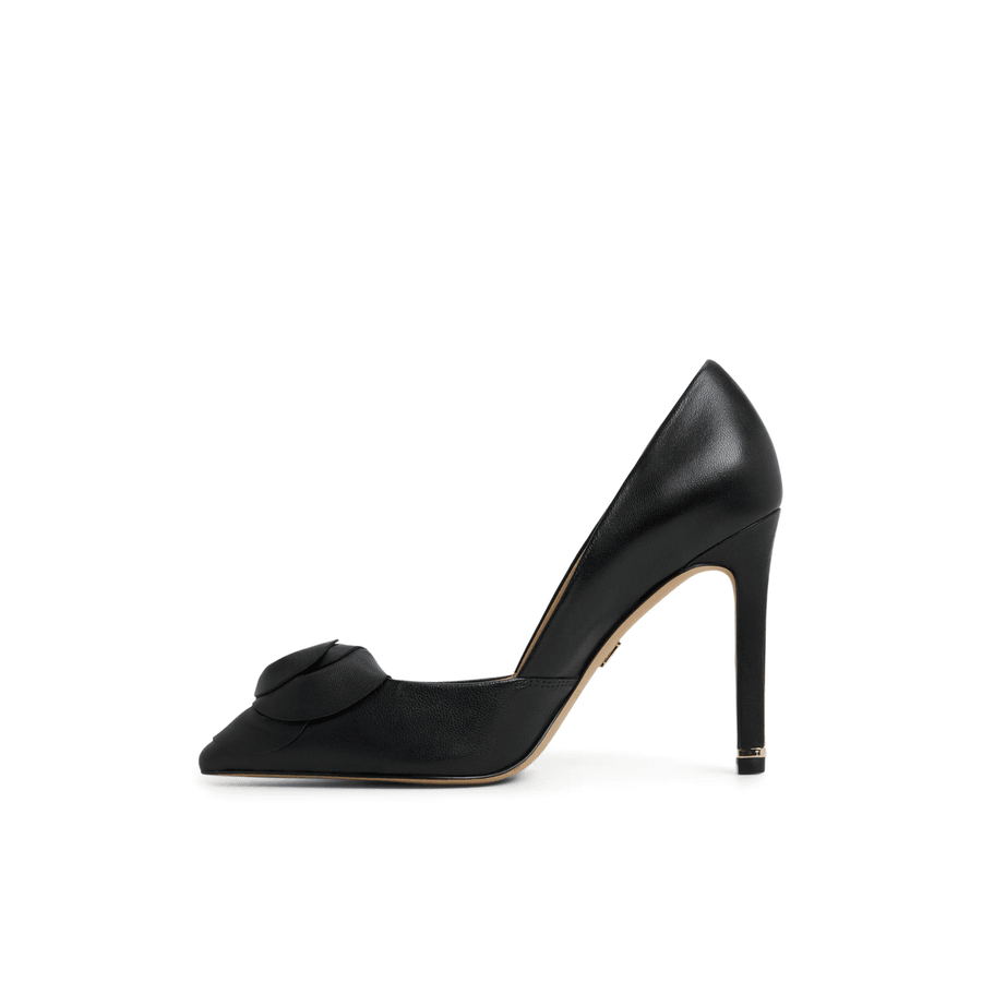 Step into elegance with the Ted Baker ROSIE | BLACK high heel pumps, designed to make a statement. These stunning black leather pumps feature a chic pointed toe and a unique sculpted leather flower detail that adds a touch of sophistication to any outfit.